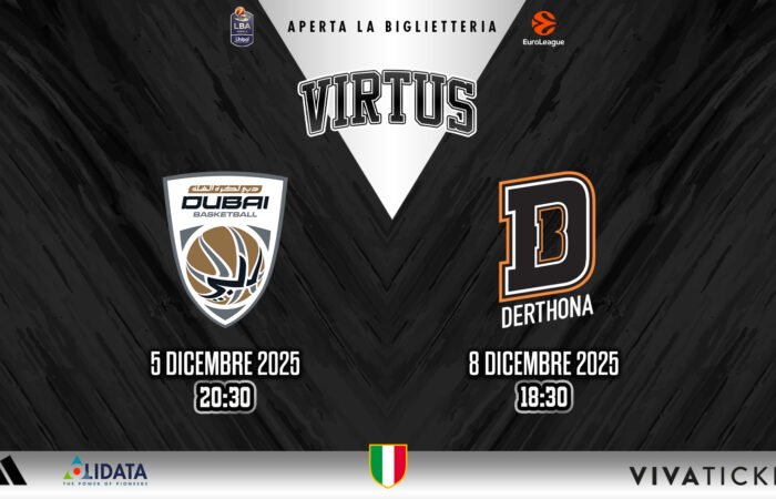 Aperta la biglietteria per le sfide con Dubai e Derthona alla Virtus Arena