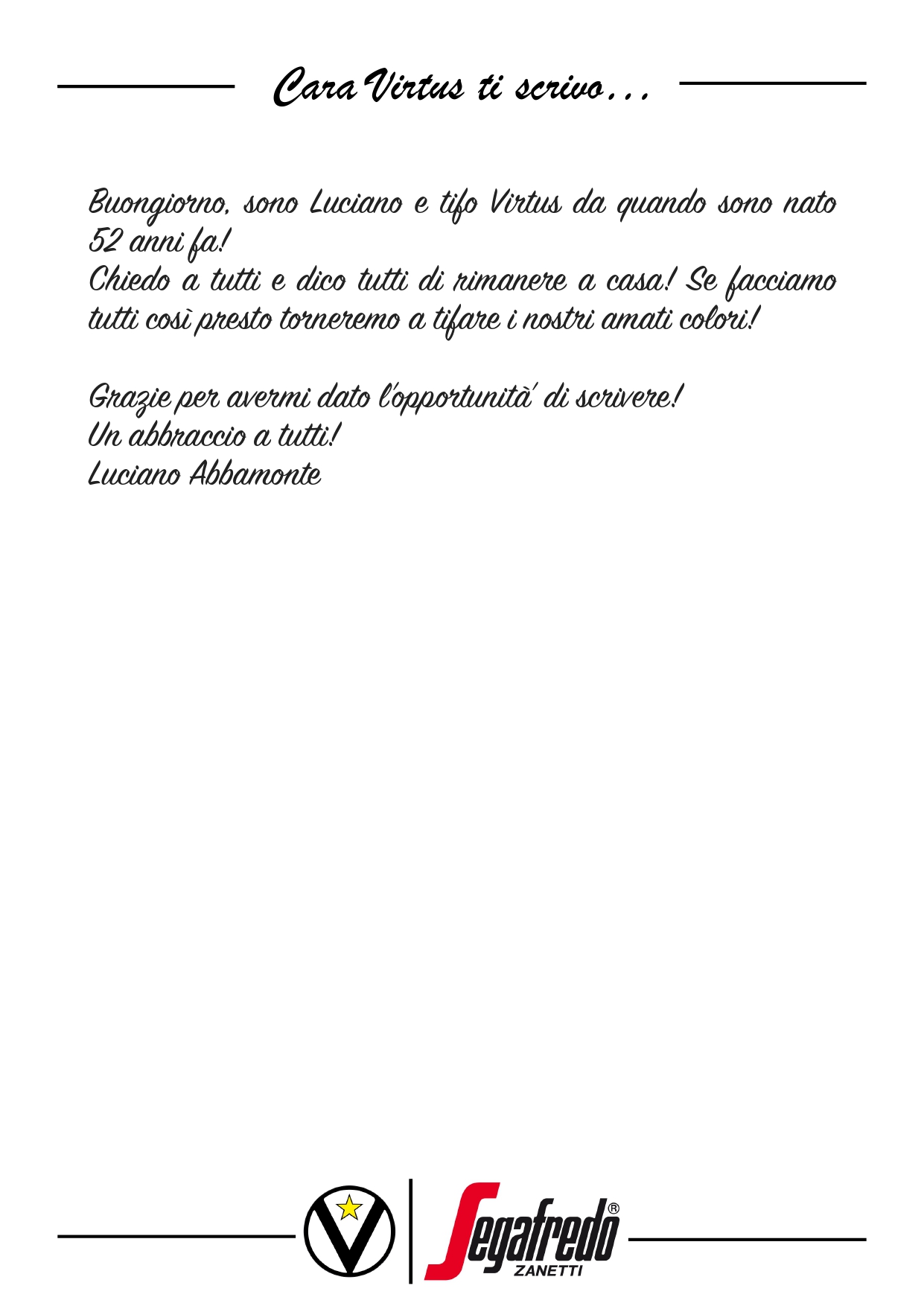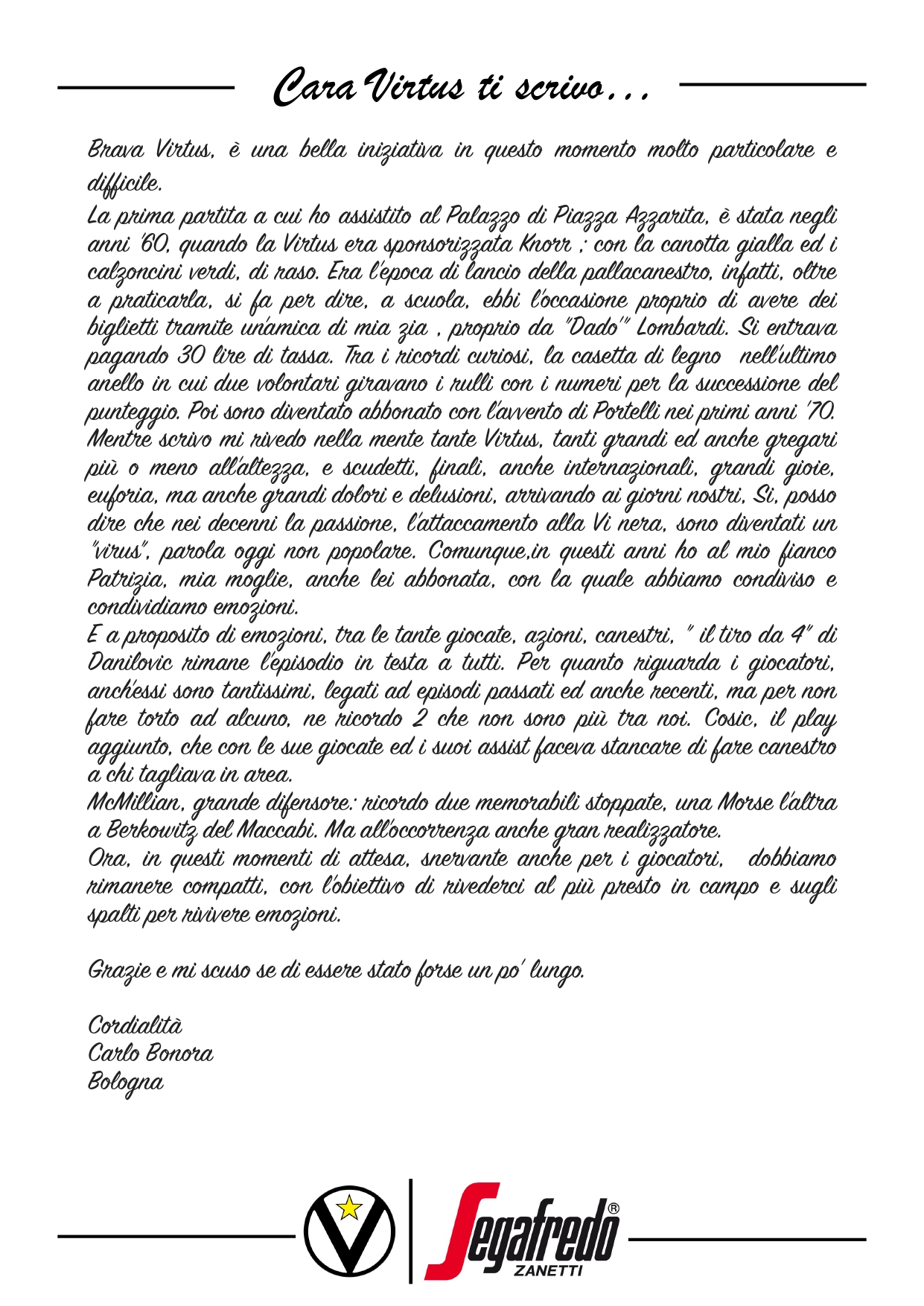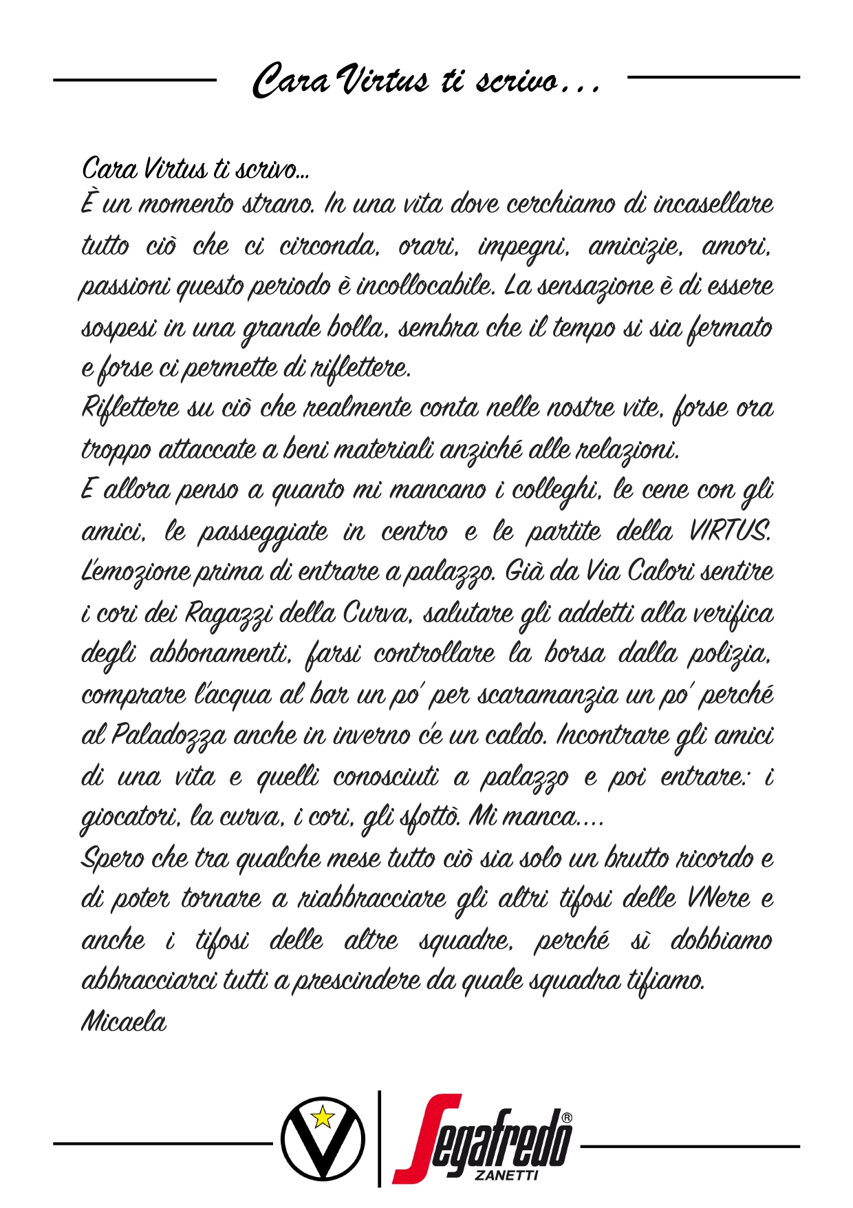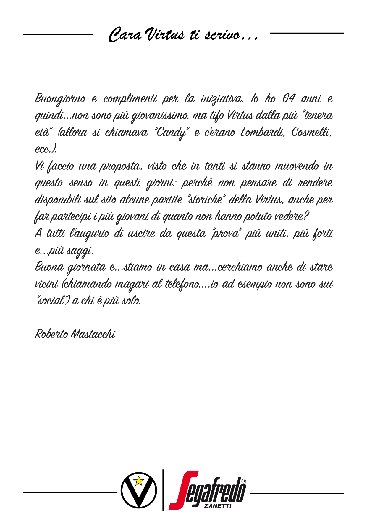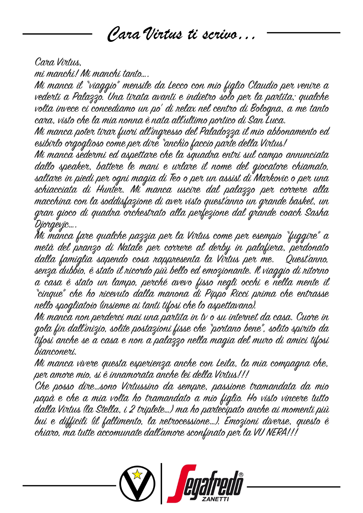 Raccontateci di voi e di noi… Inviate le vostre lettere a comunicazione@virtus.it