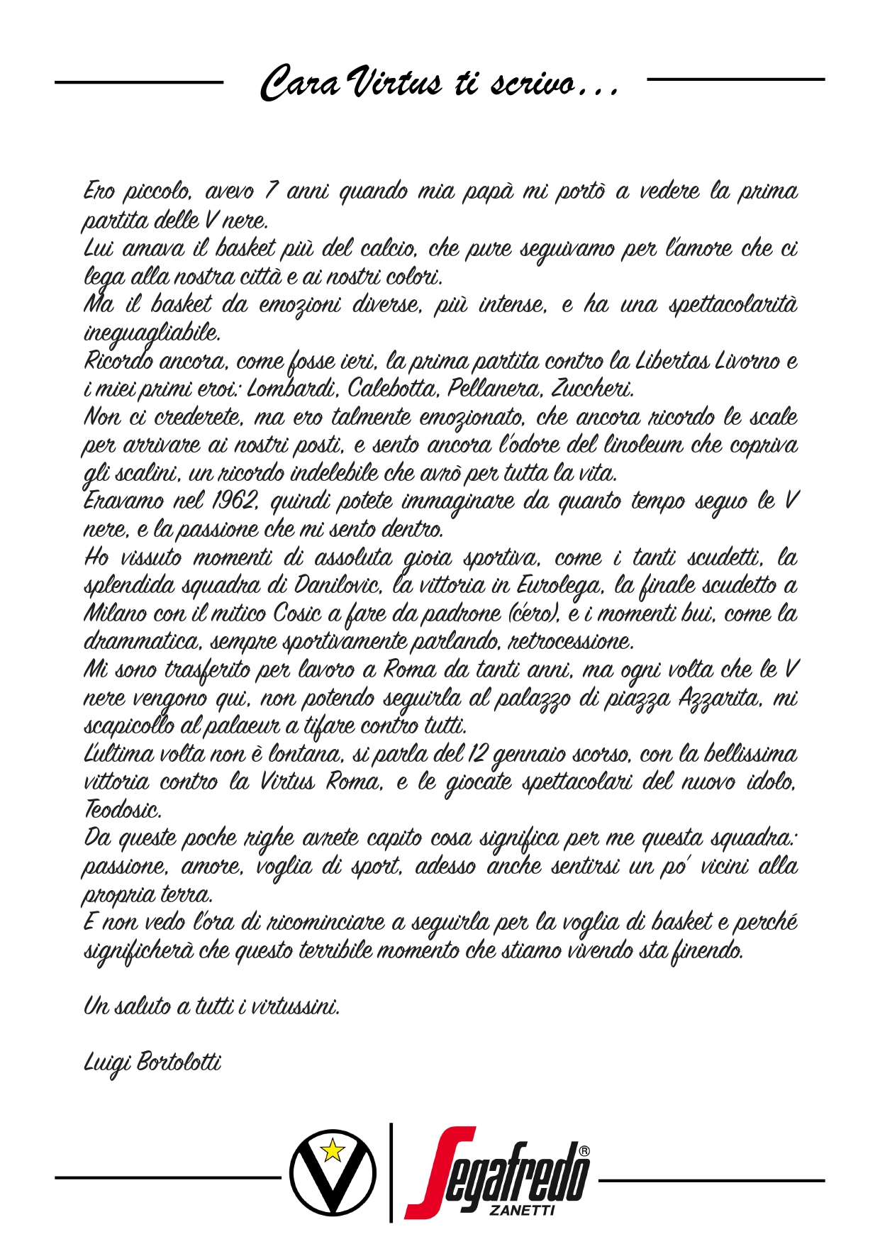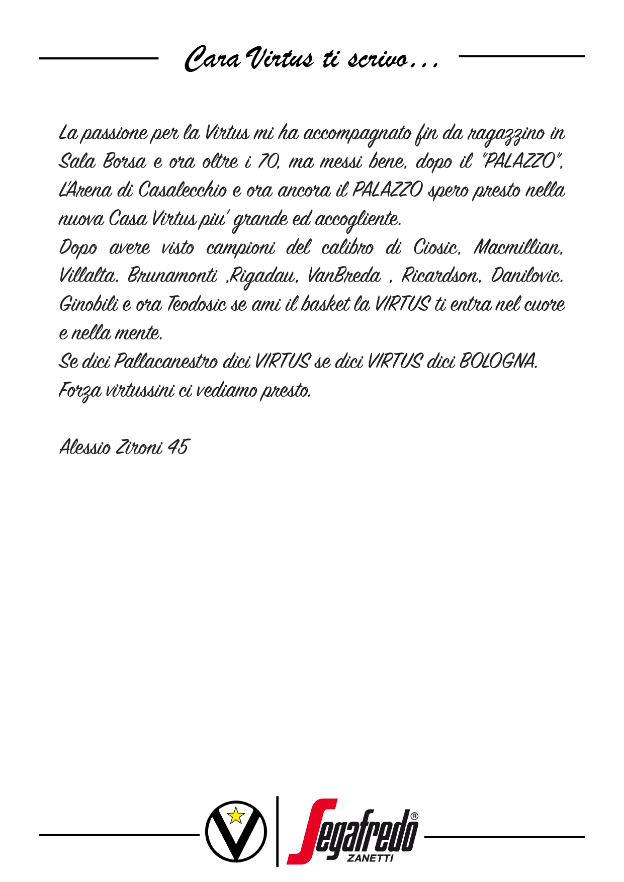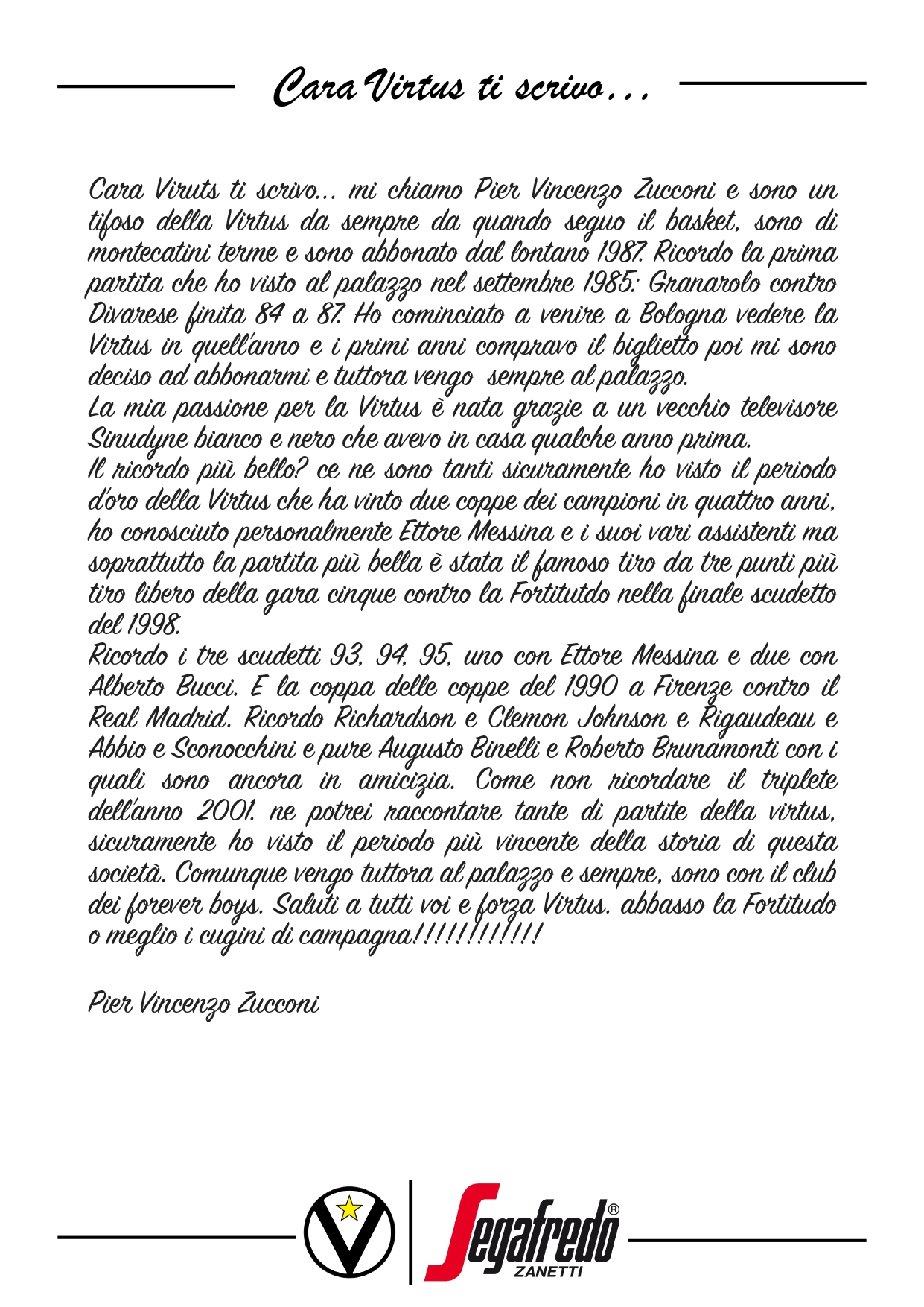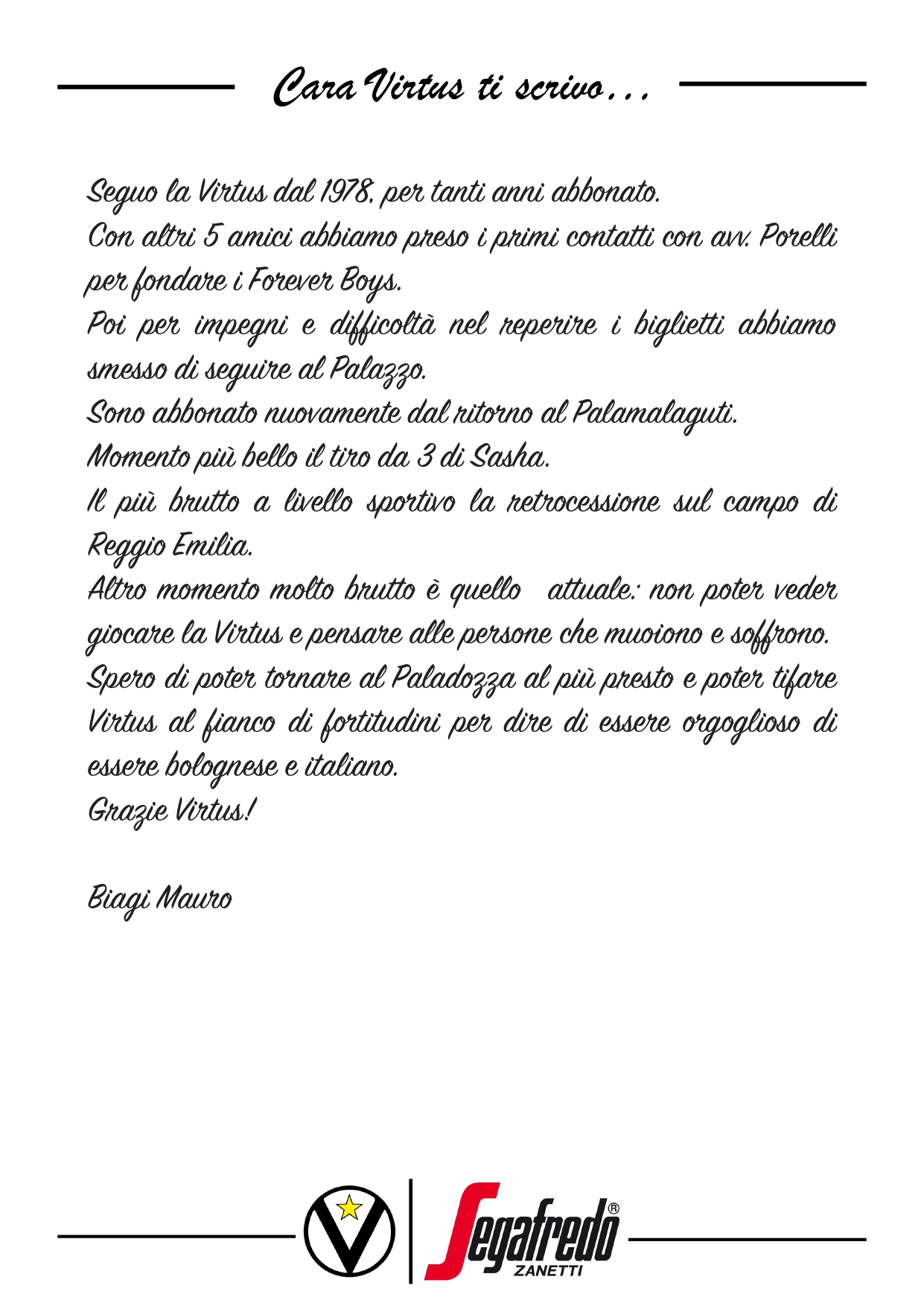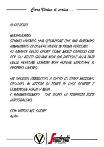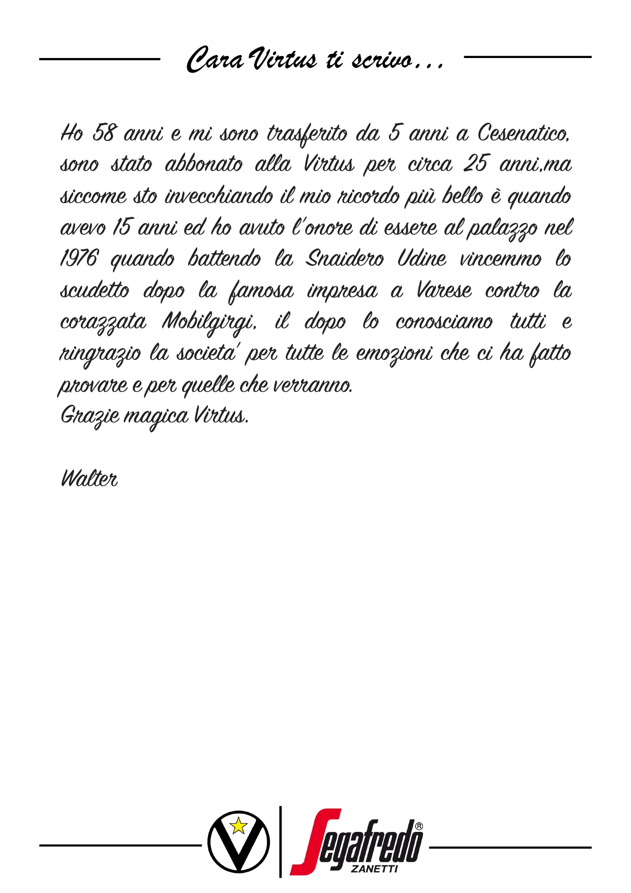 Raccontateci di voi e di noi… Inviate le vostre lettere a comunicazione@virtus.it