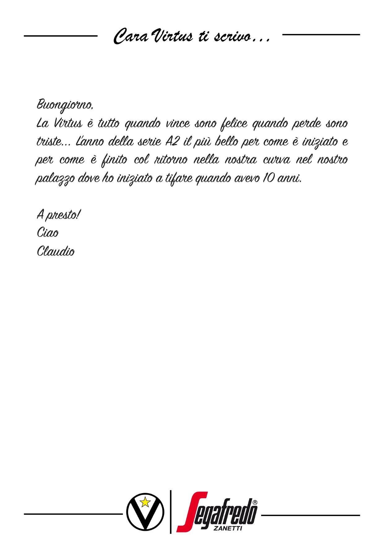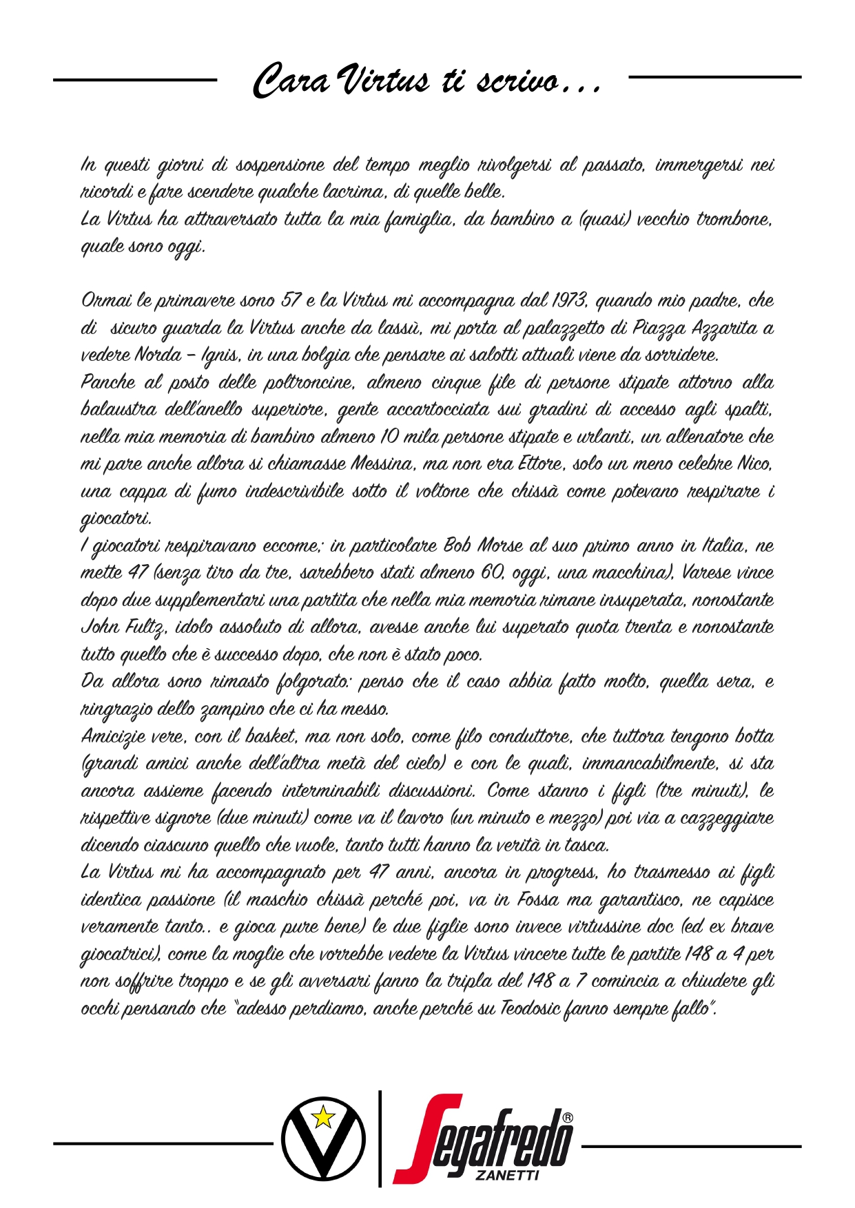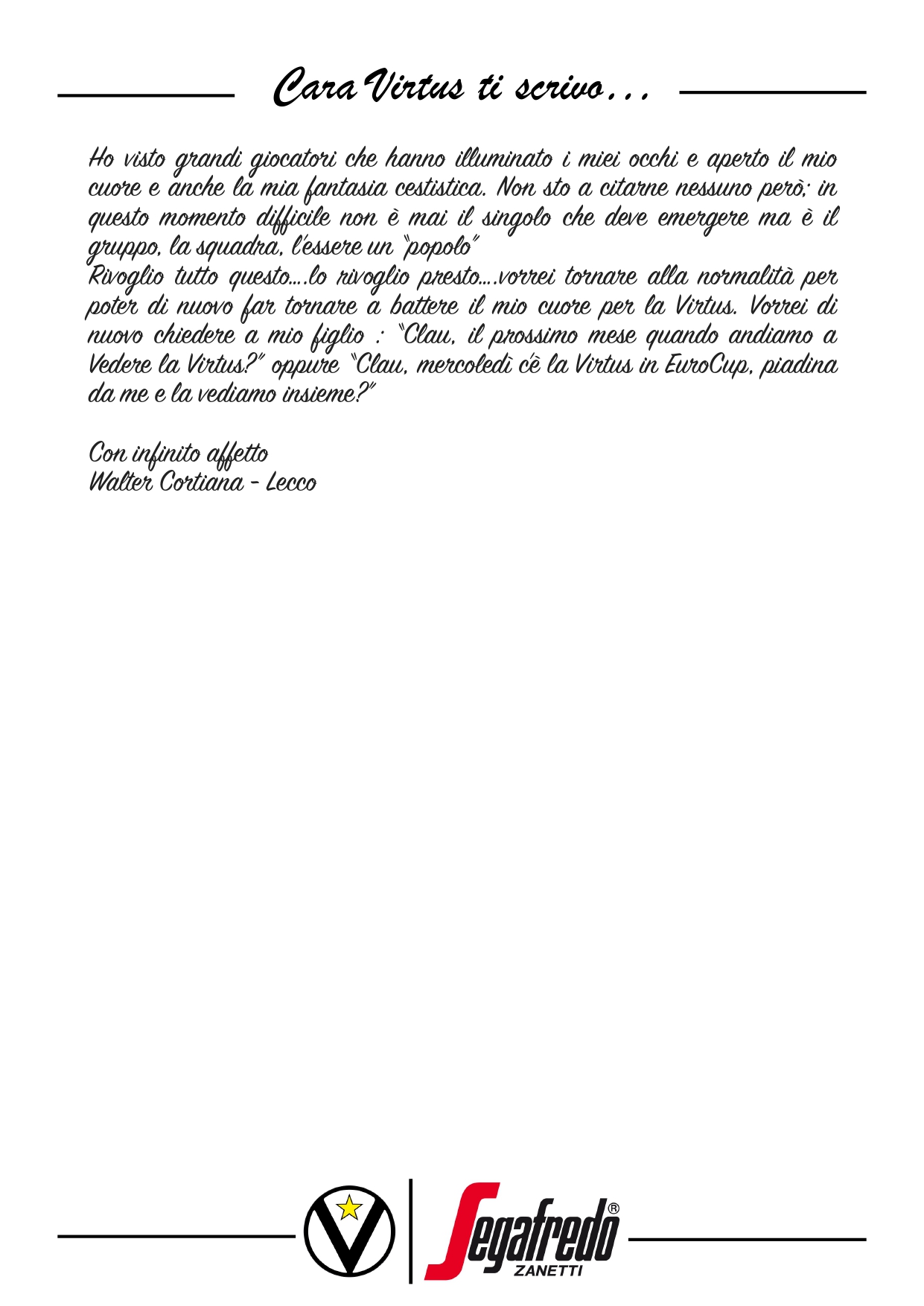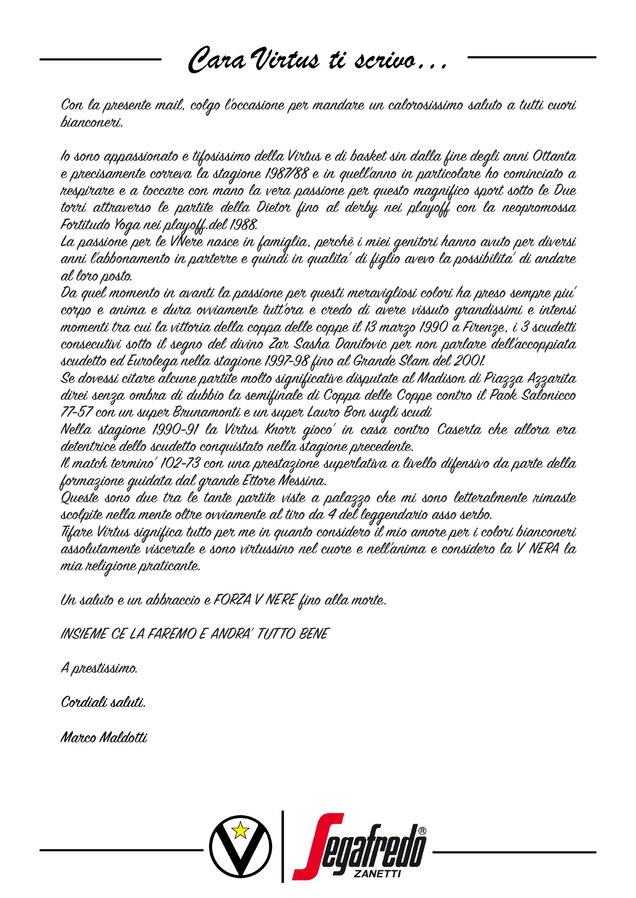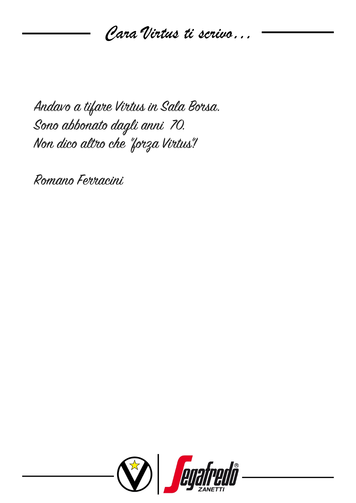 Raccontateci di voi e di noi… Inviate le vostre lettere a comunicazione@virtus.it