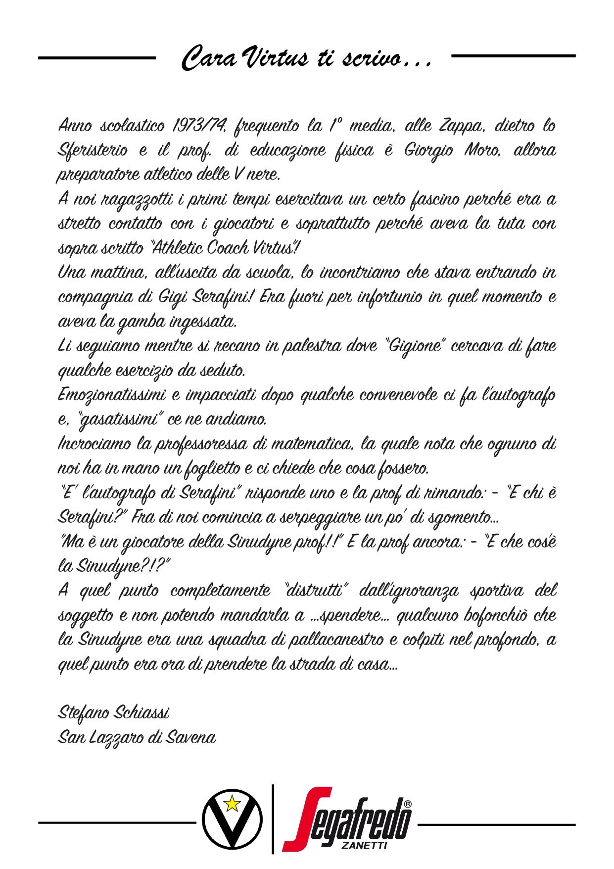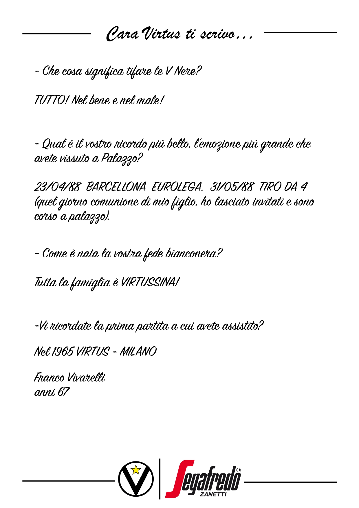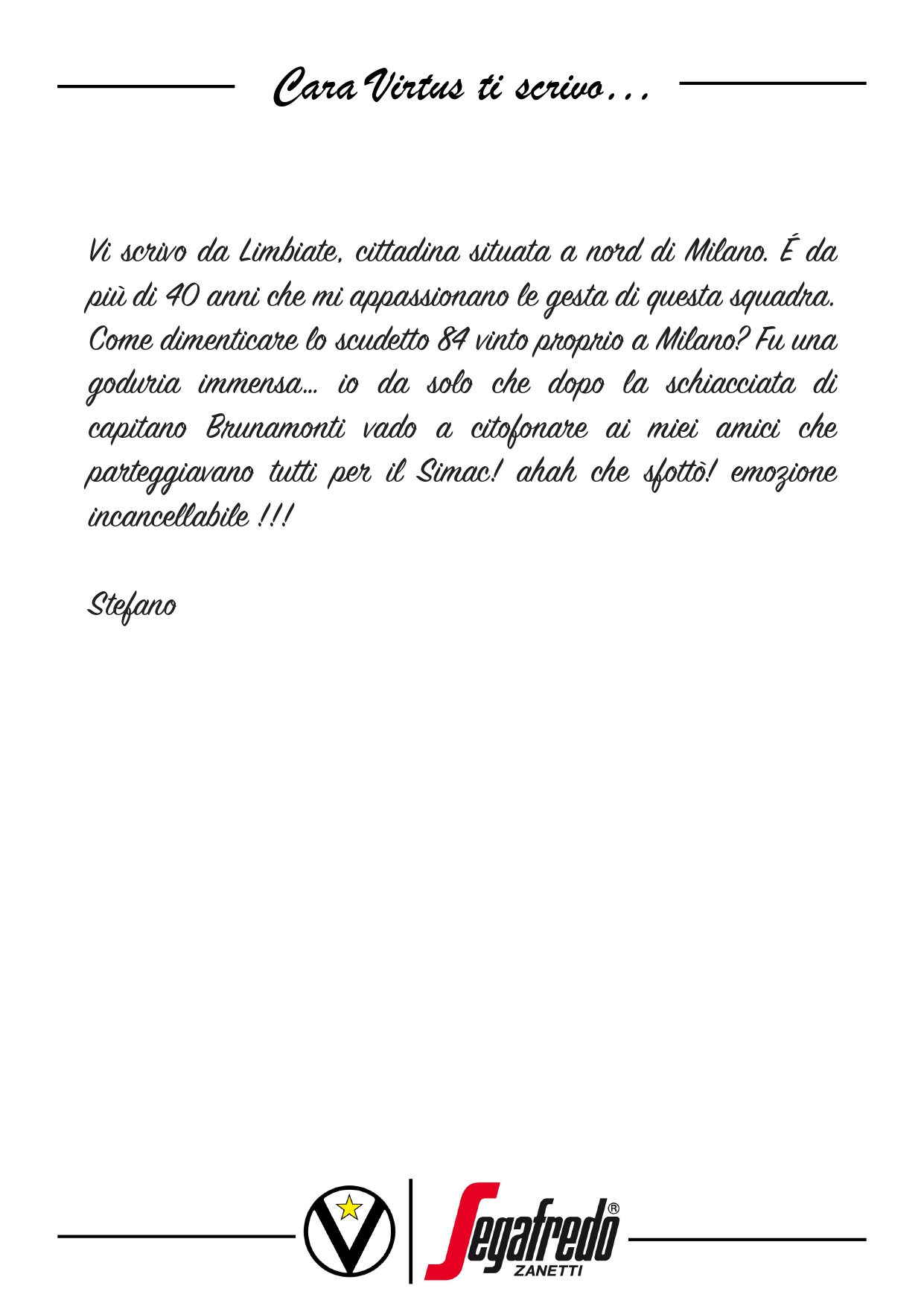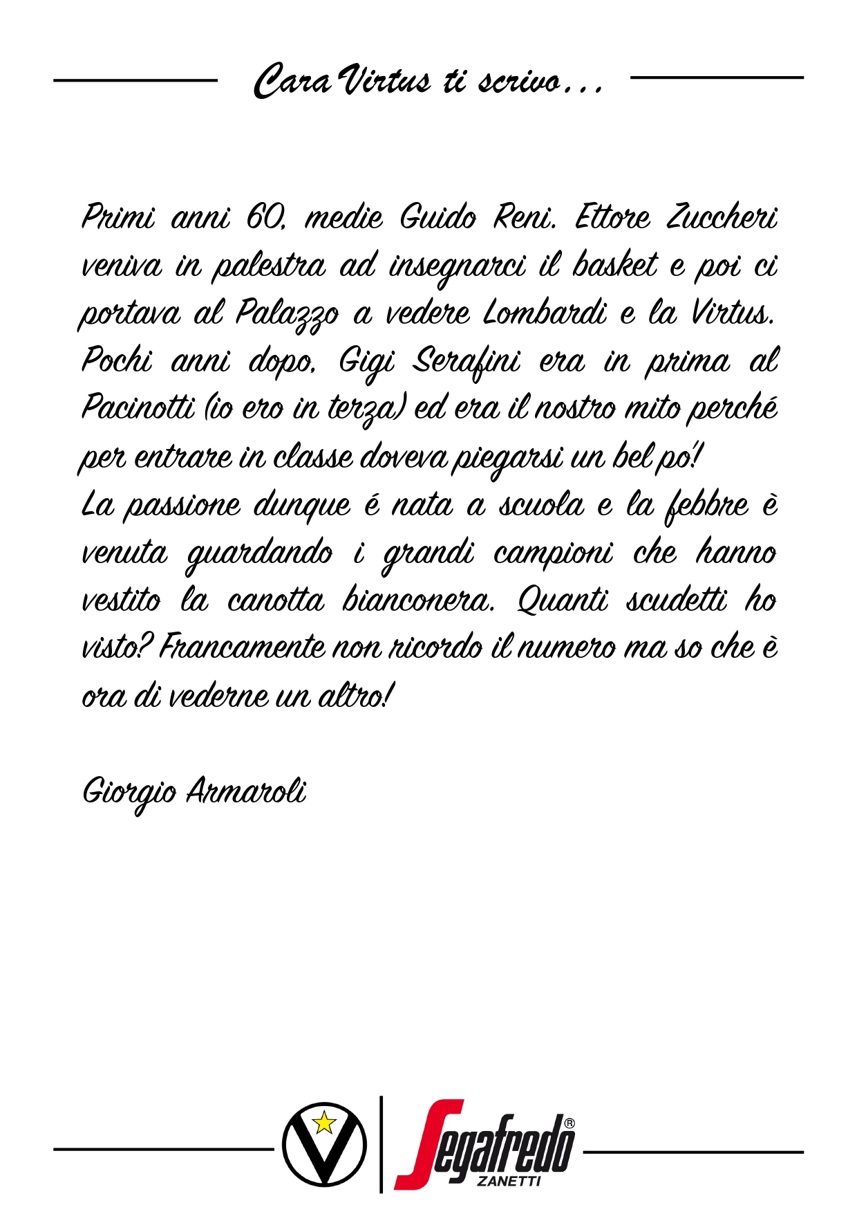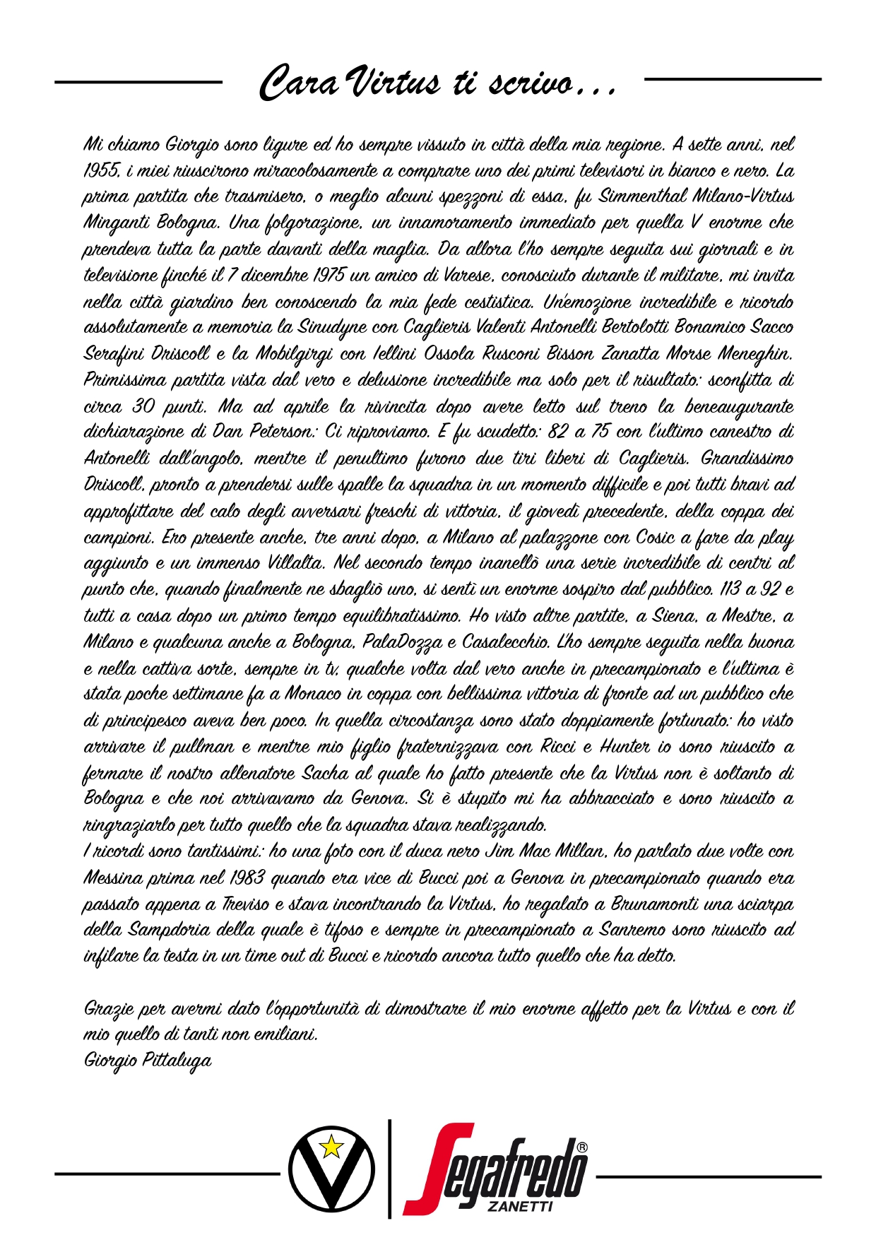 Raccontateci di voi e di noi… Inviate le vostre lettere a comunicazione@virtus.it