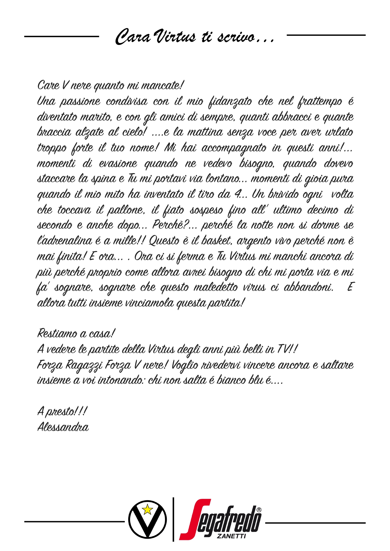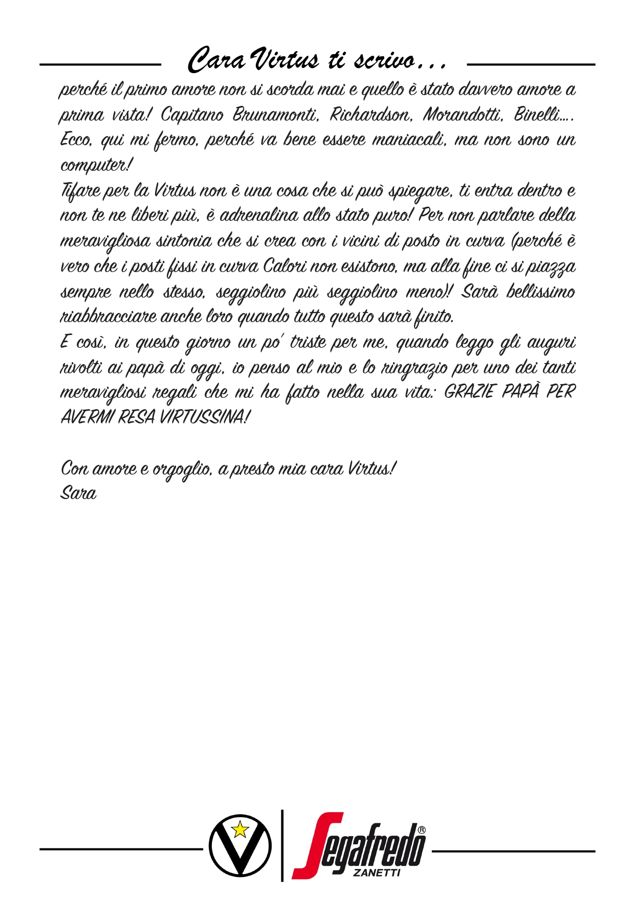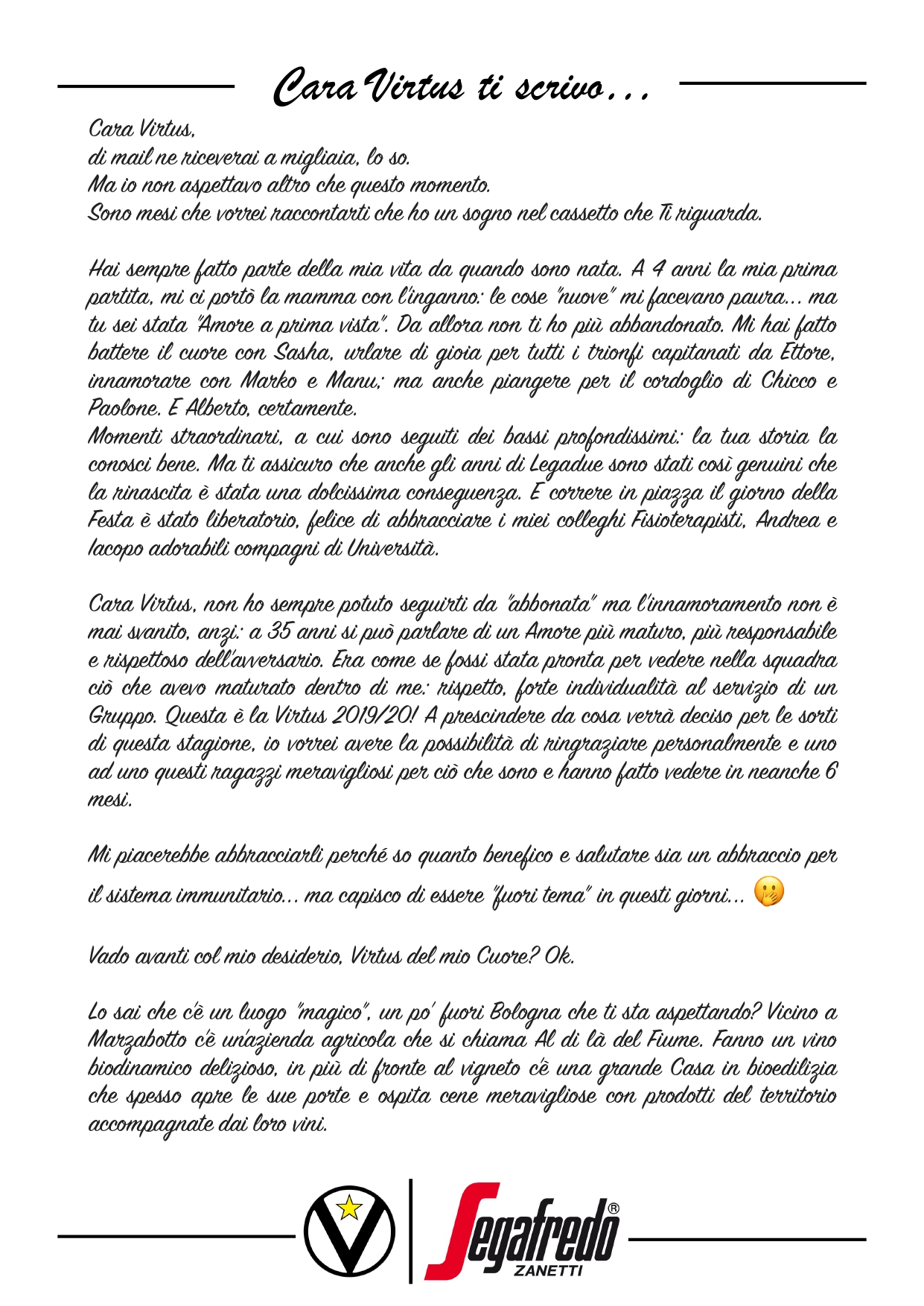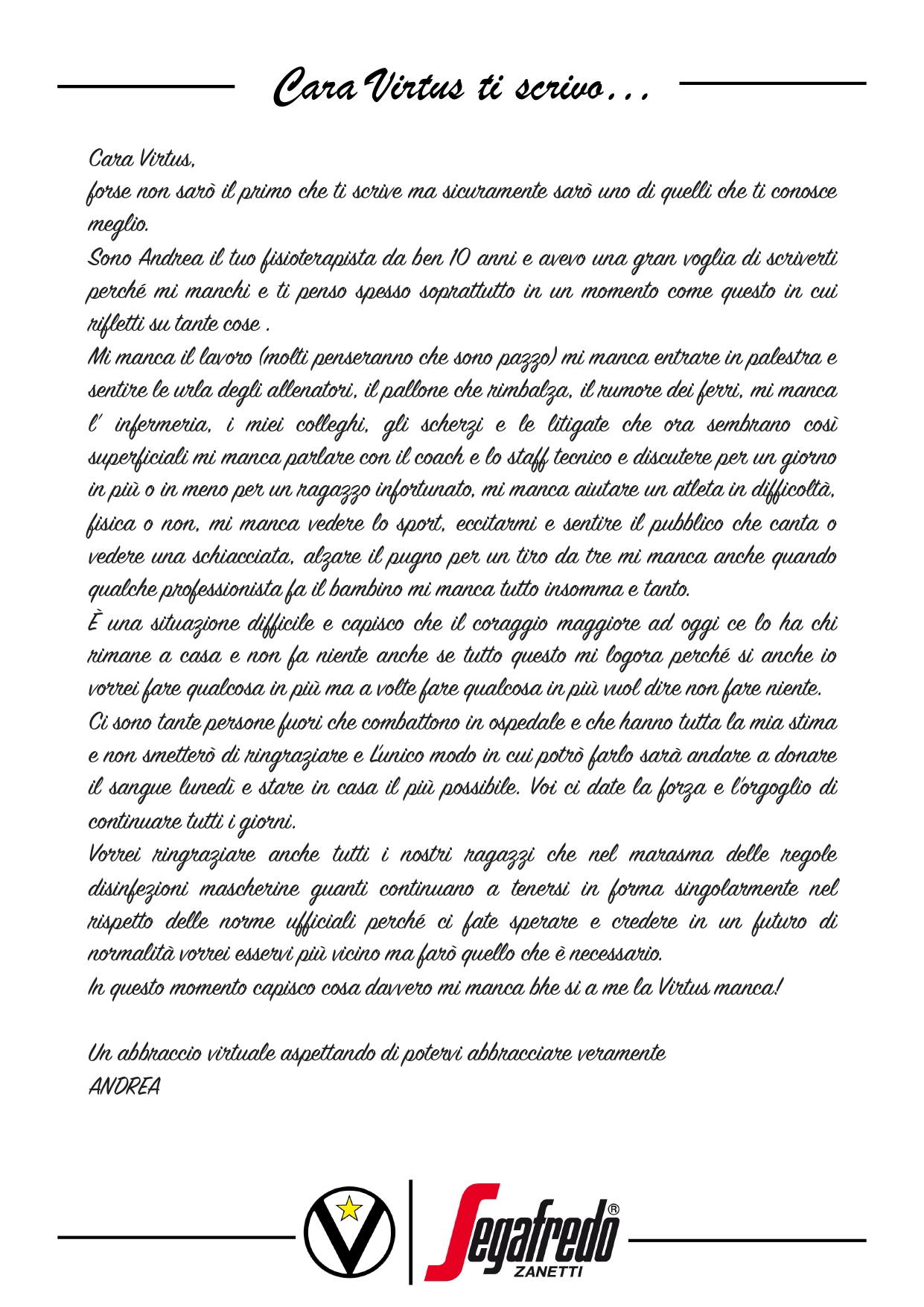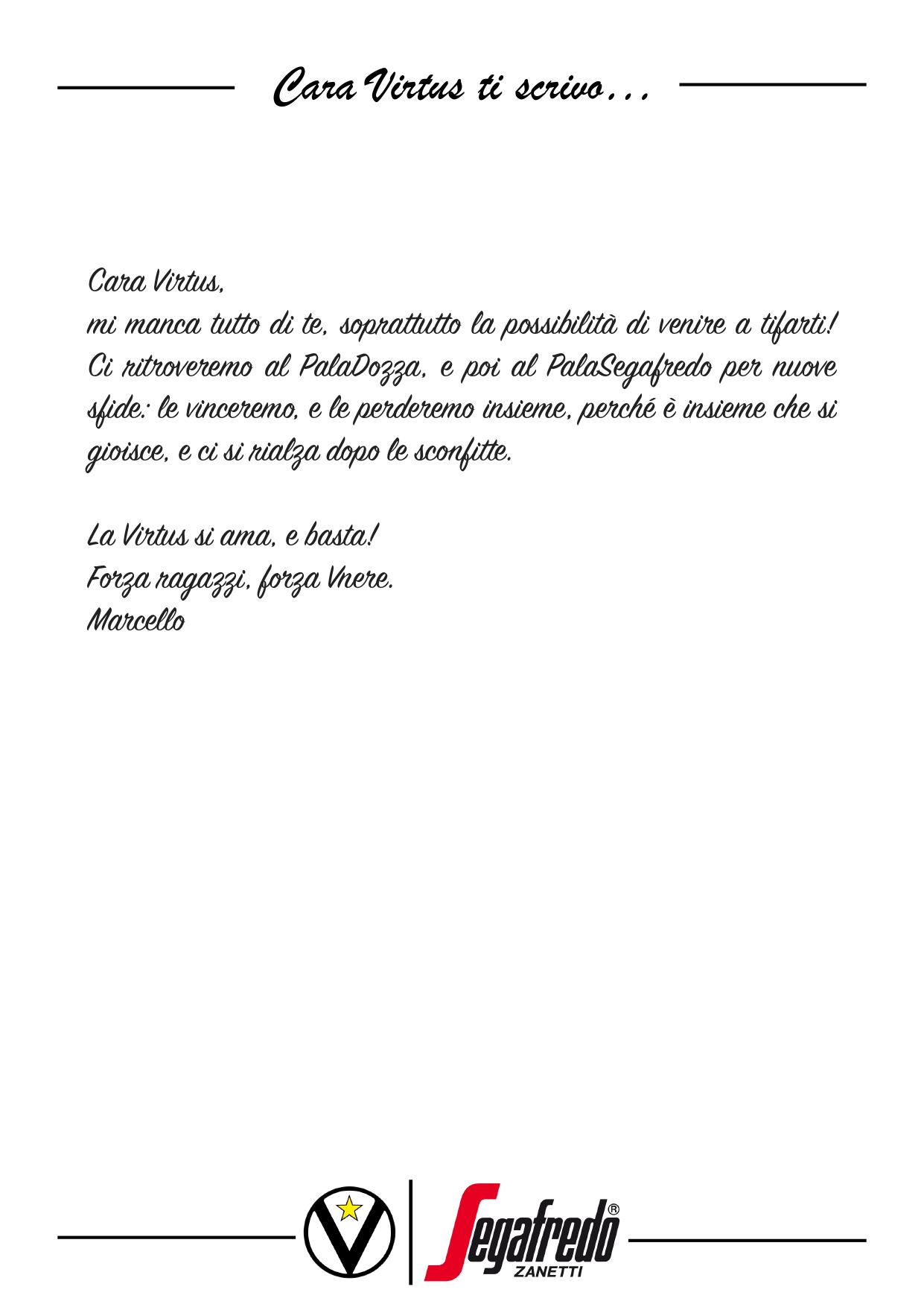 Cara Virtus ti scrivo