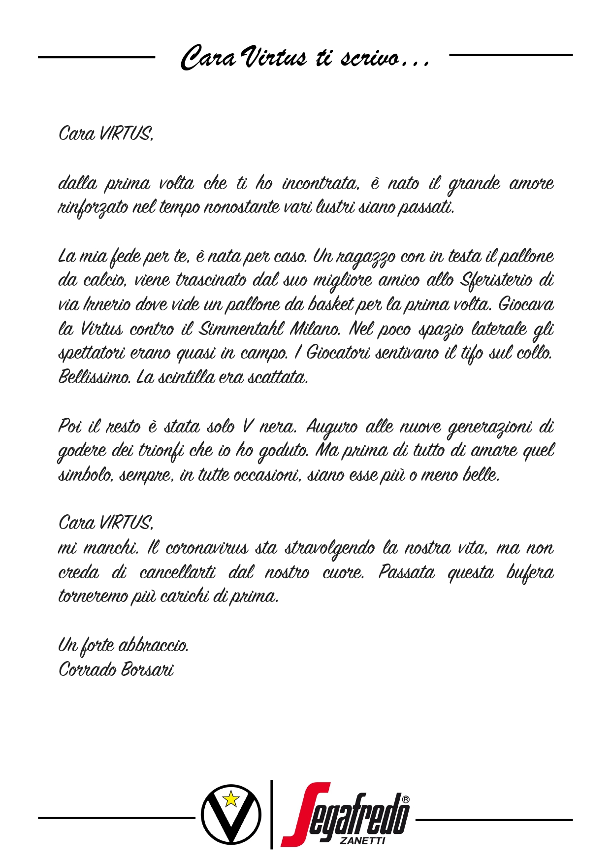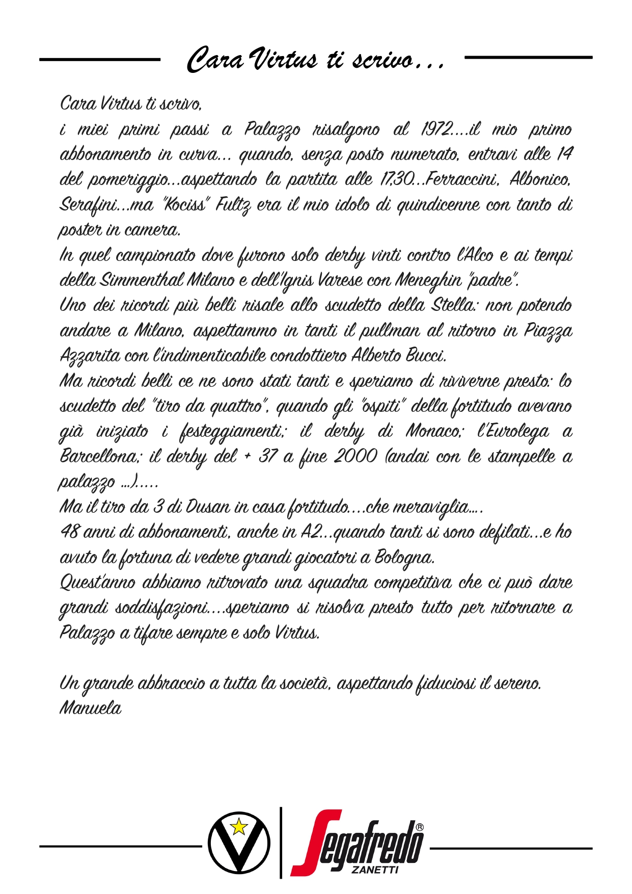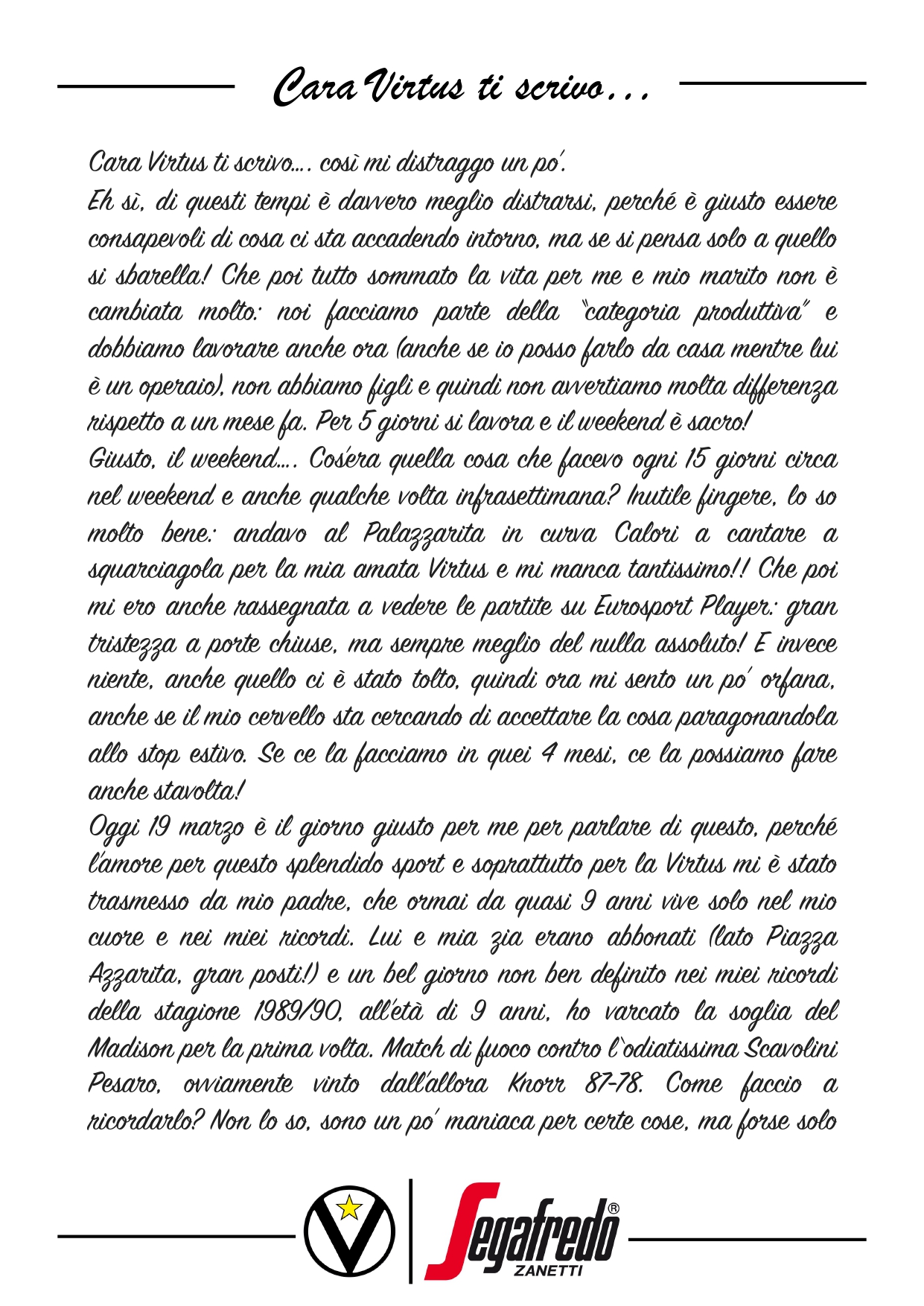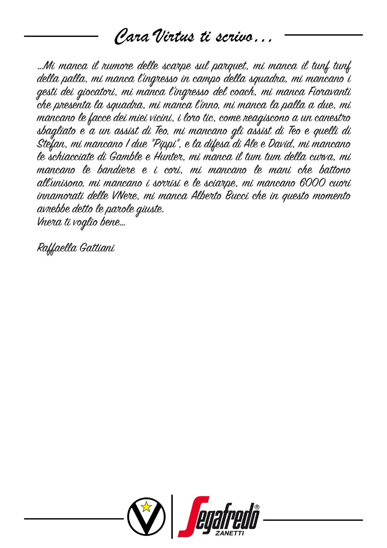 Cara Virtus ti scrivo