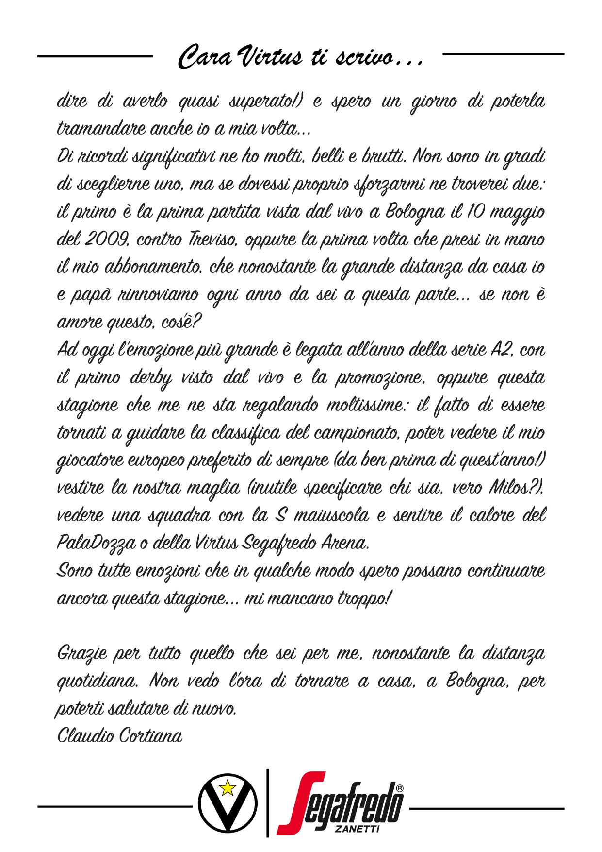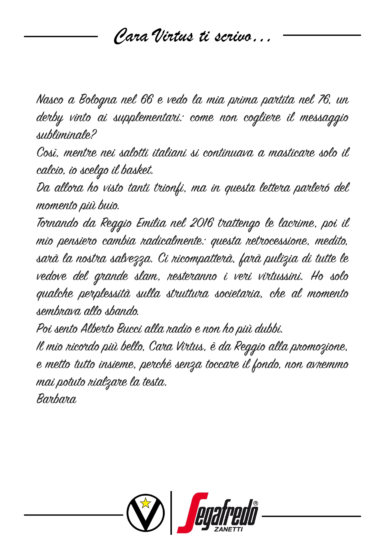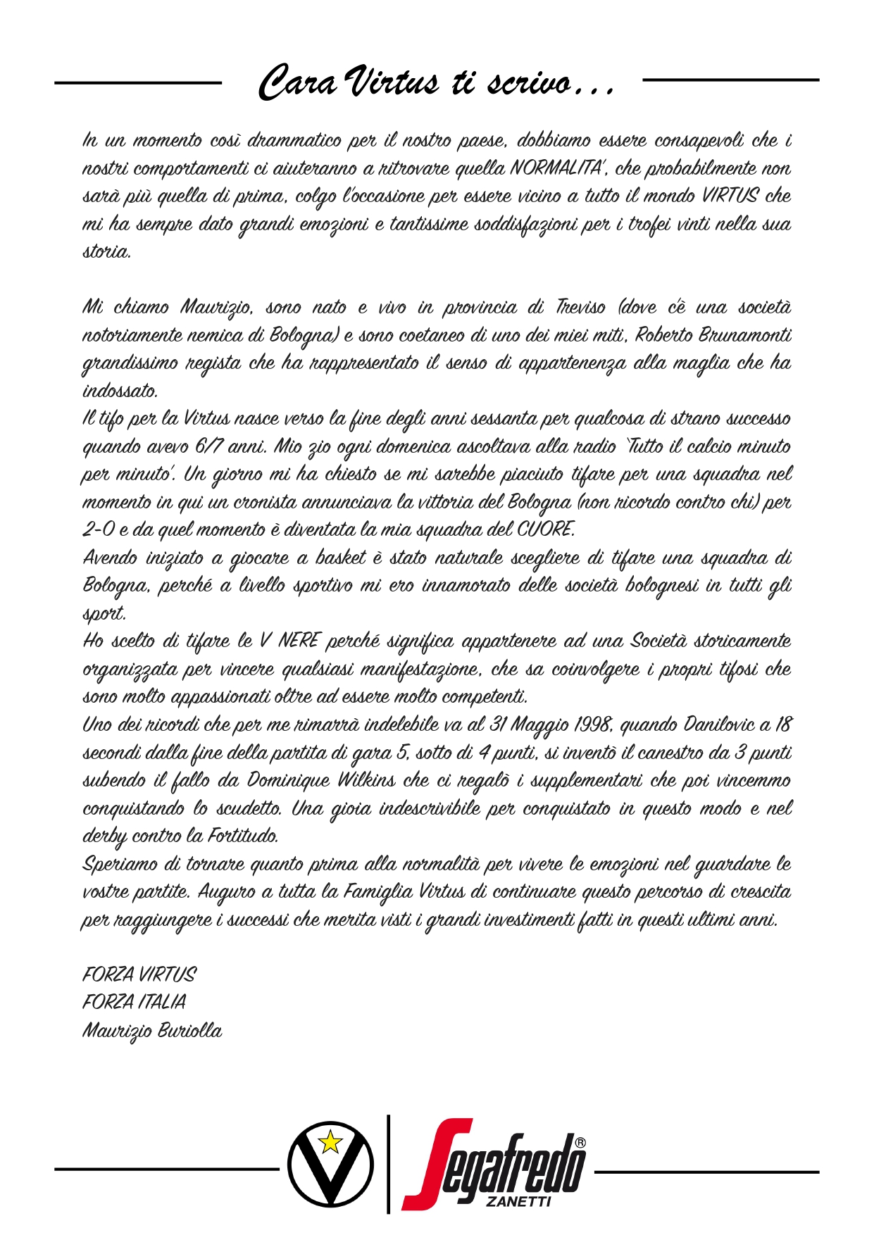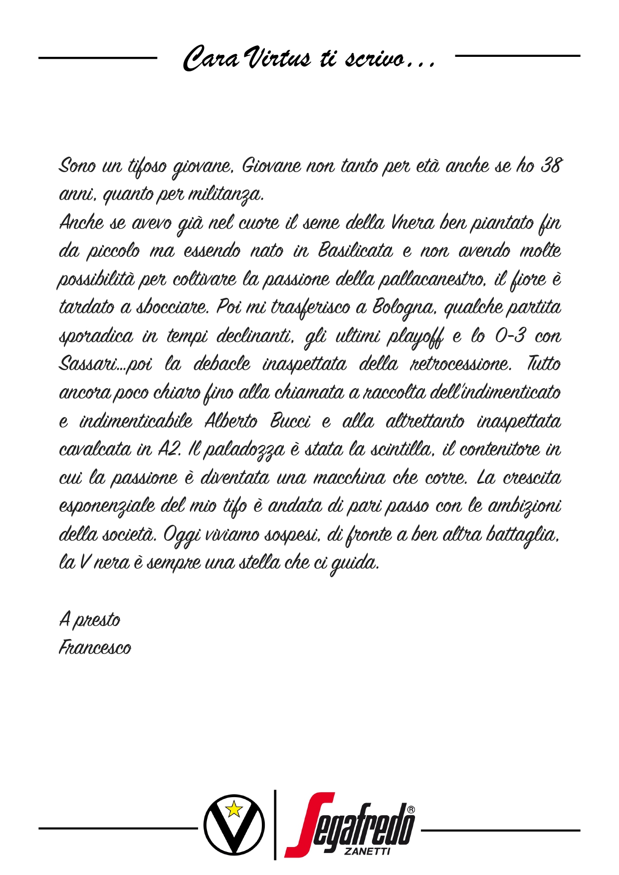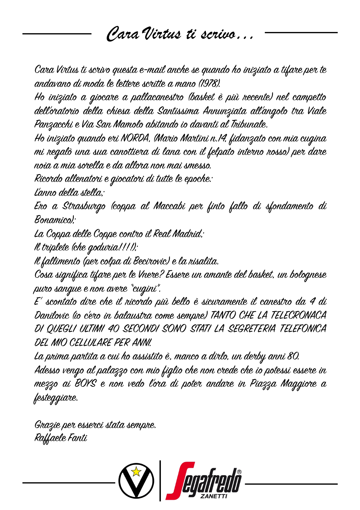 Cara Virtus ti scrivo