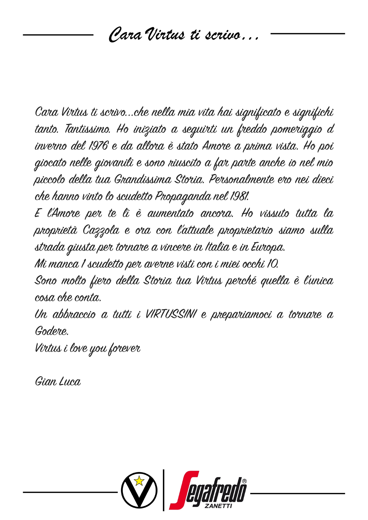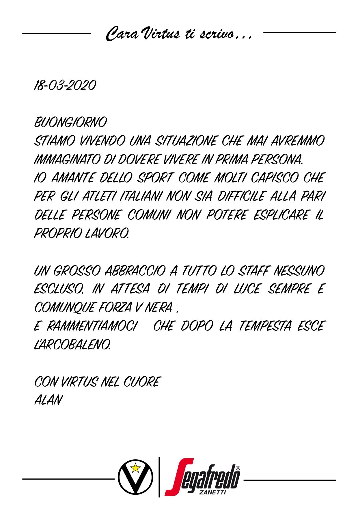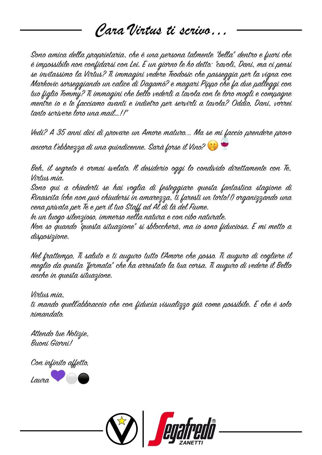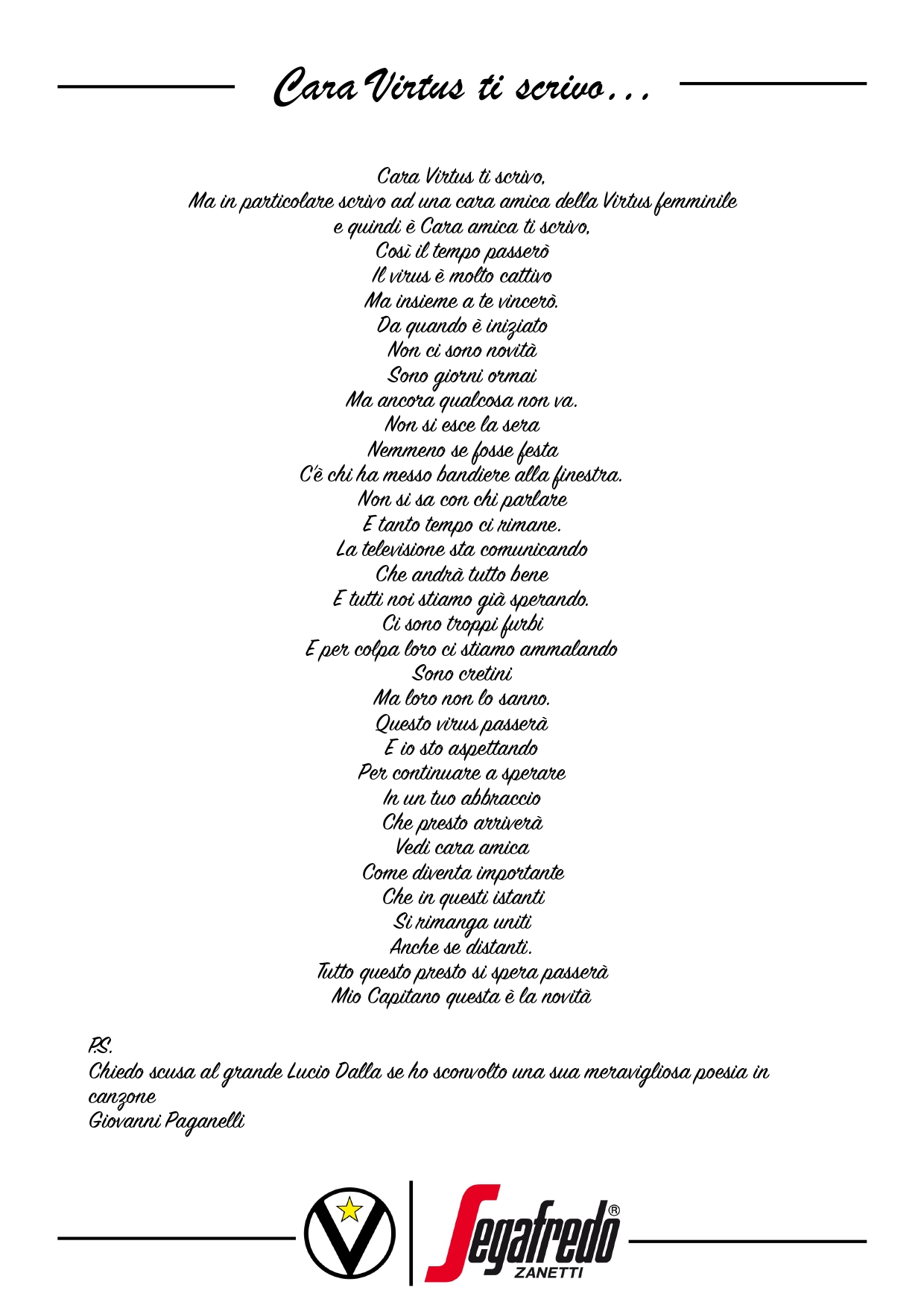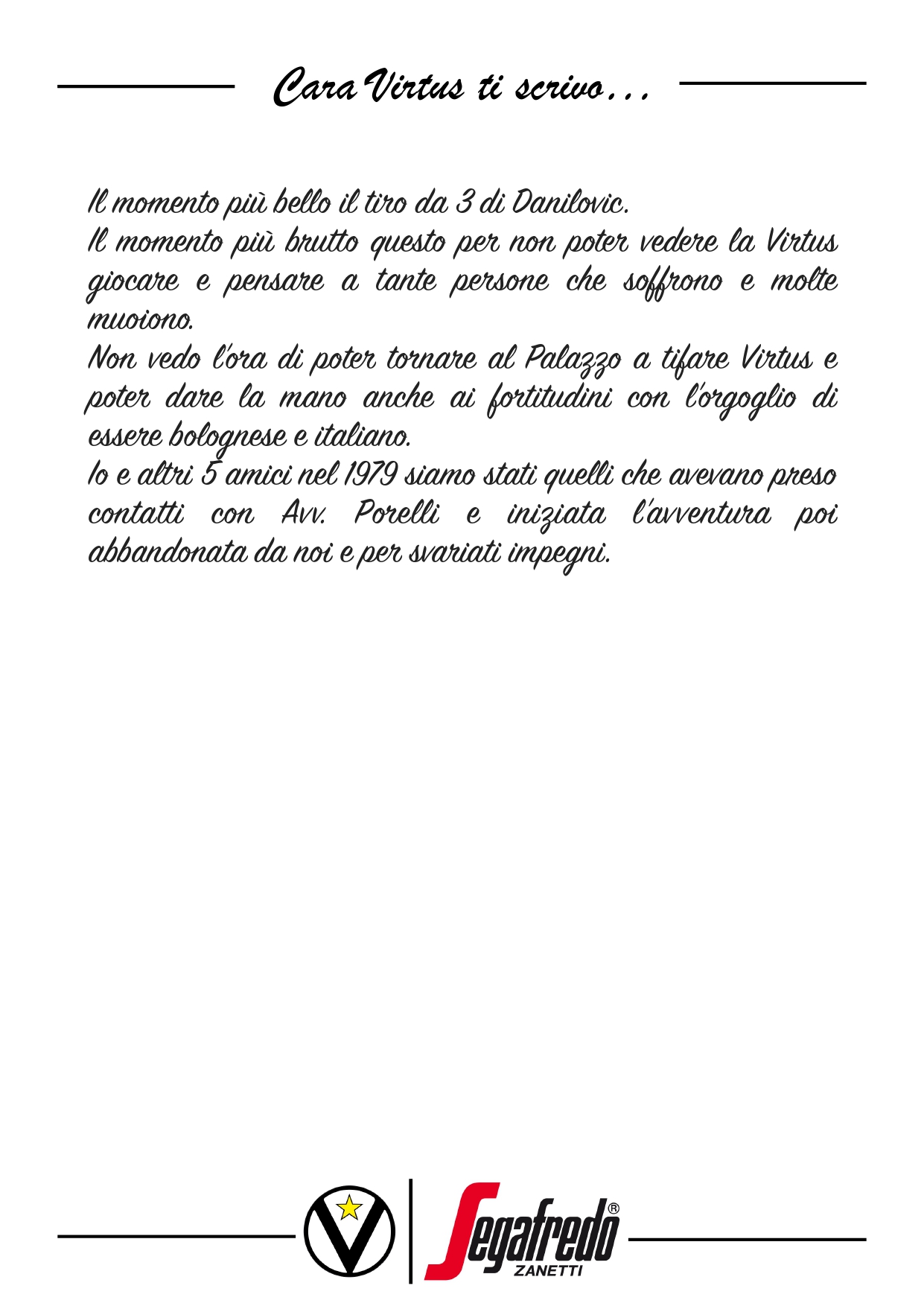 Cara Virtus ti scrivo