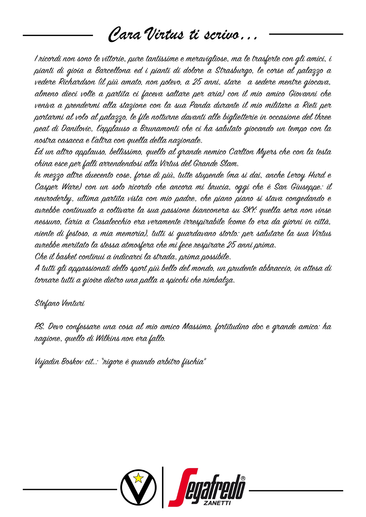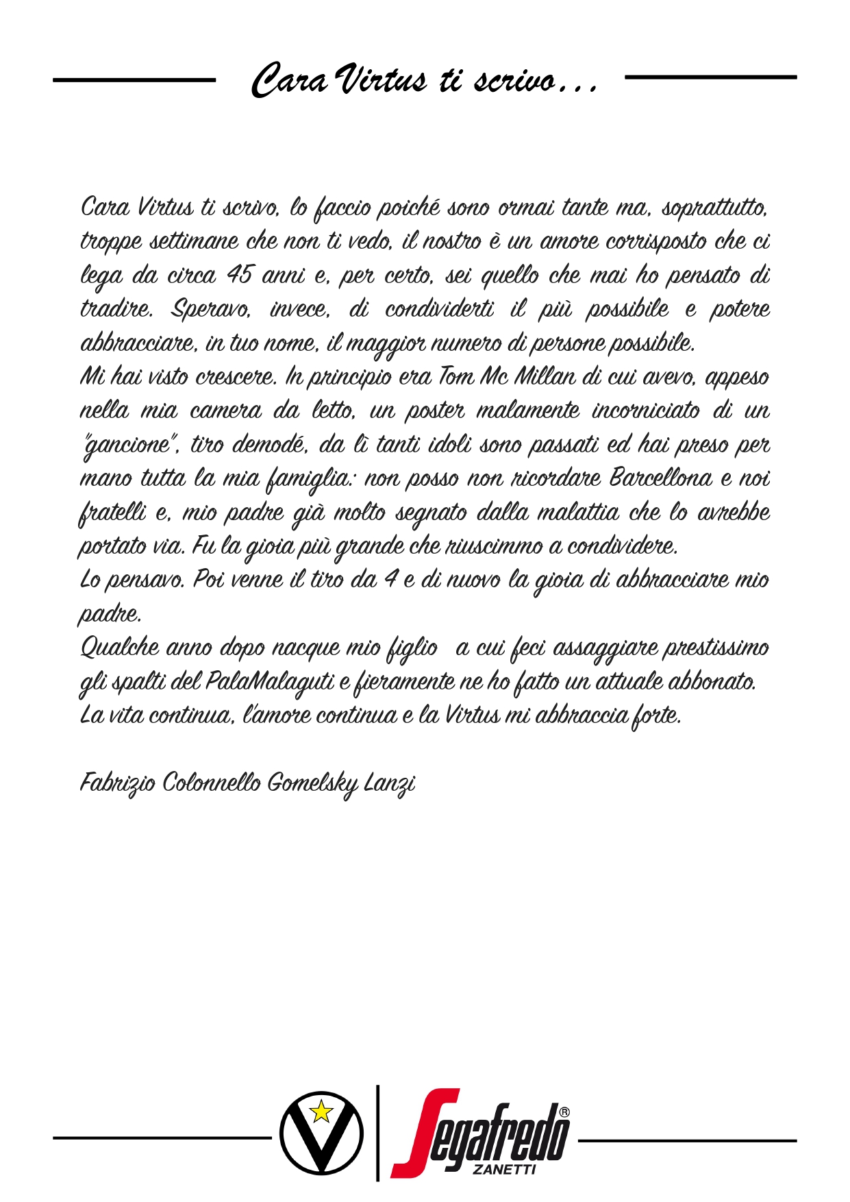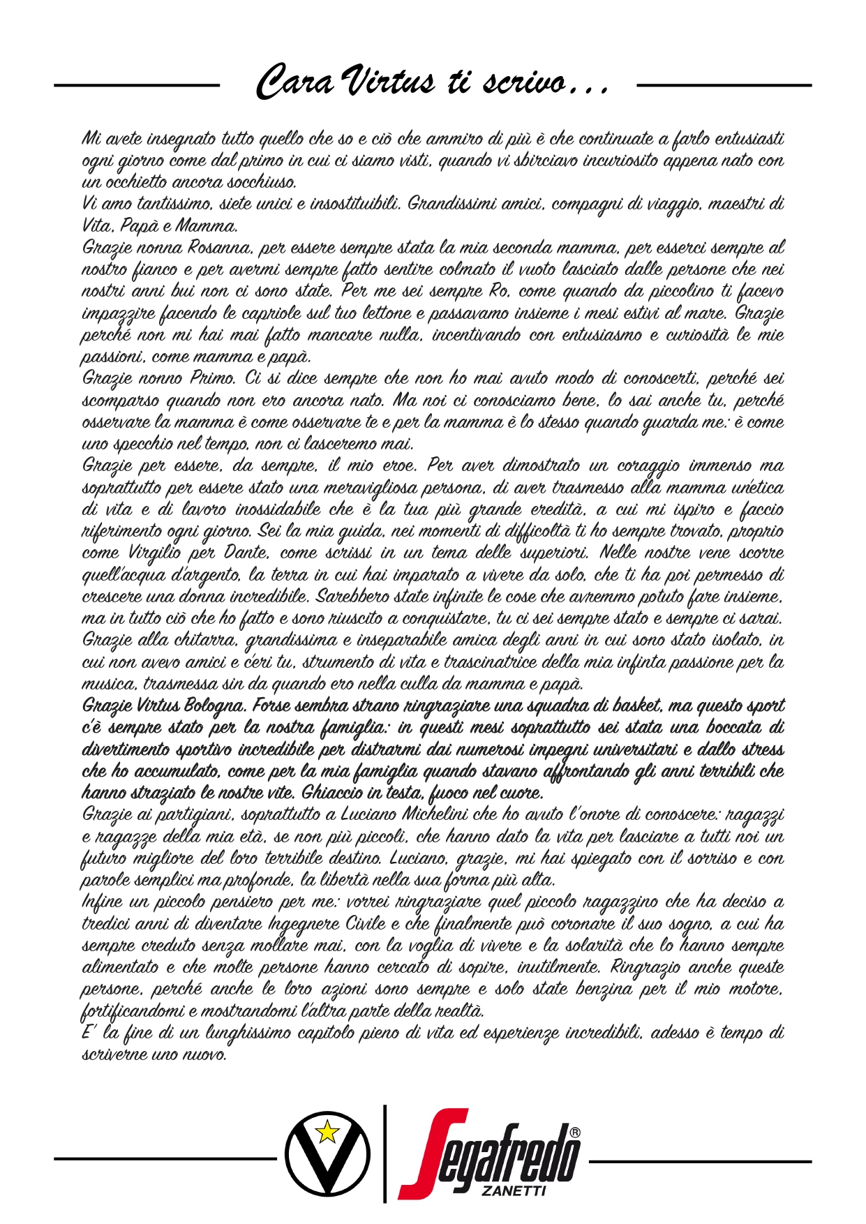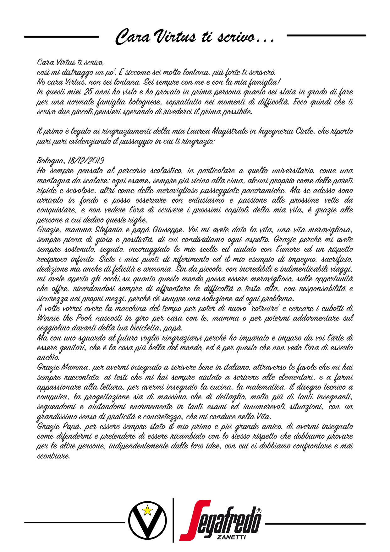 Cara Virtus ti scrivo