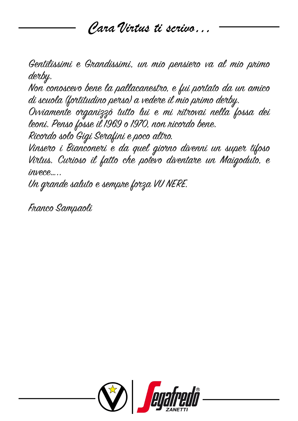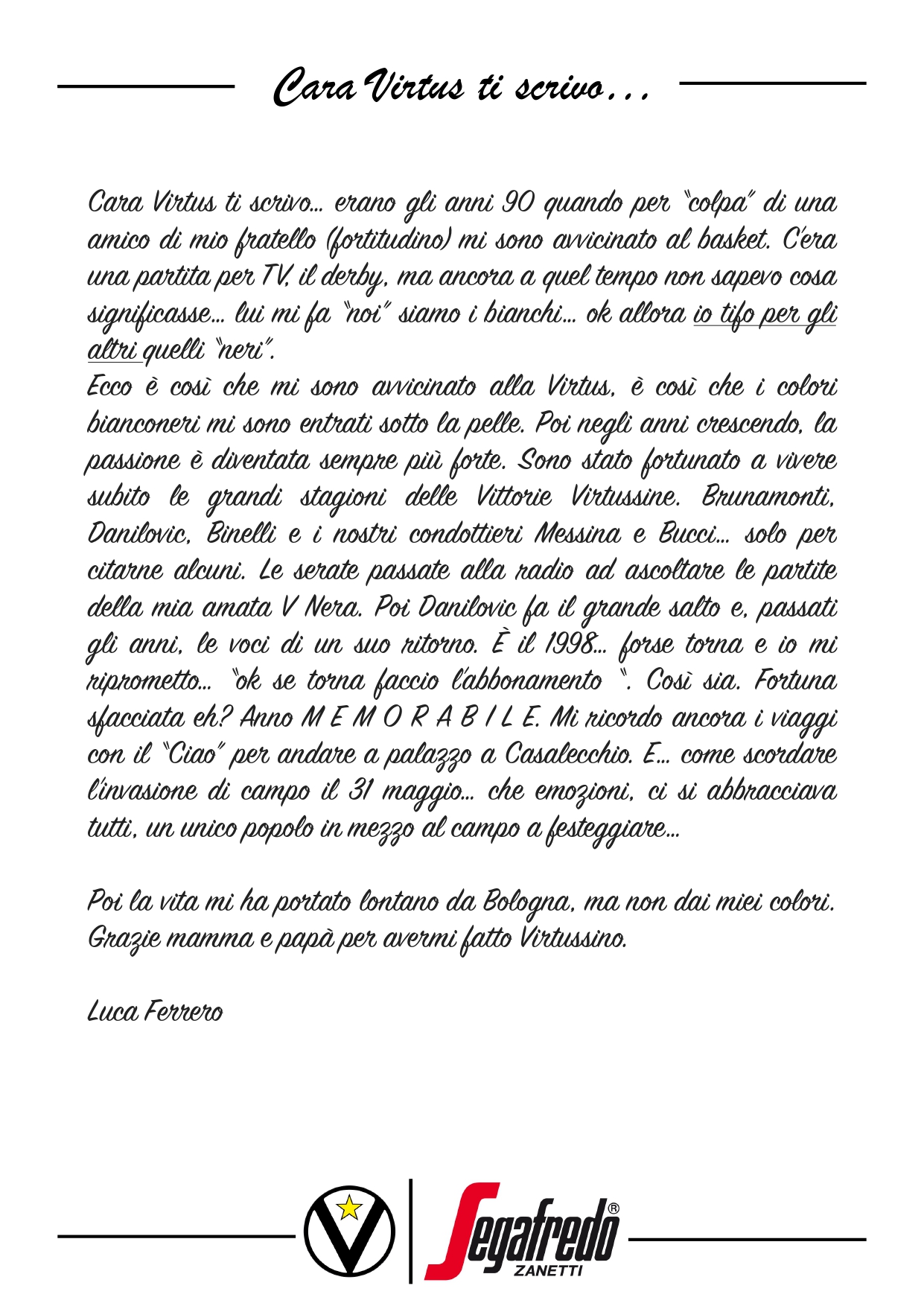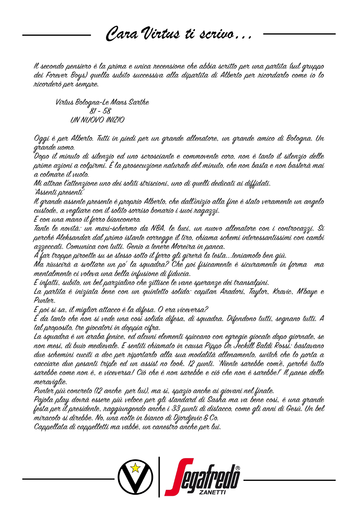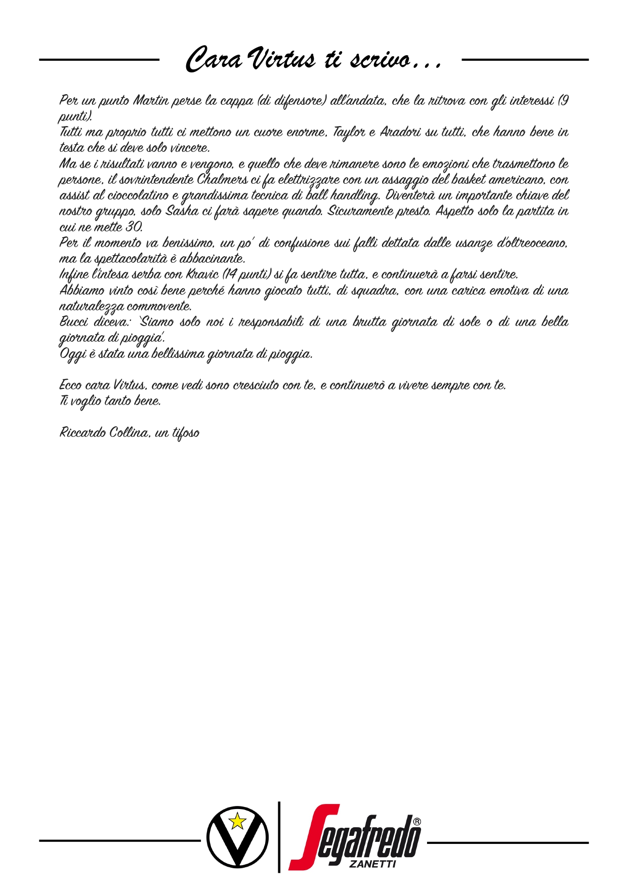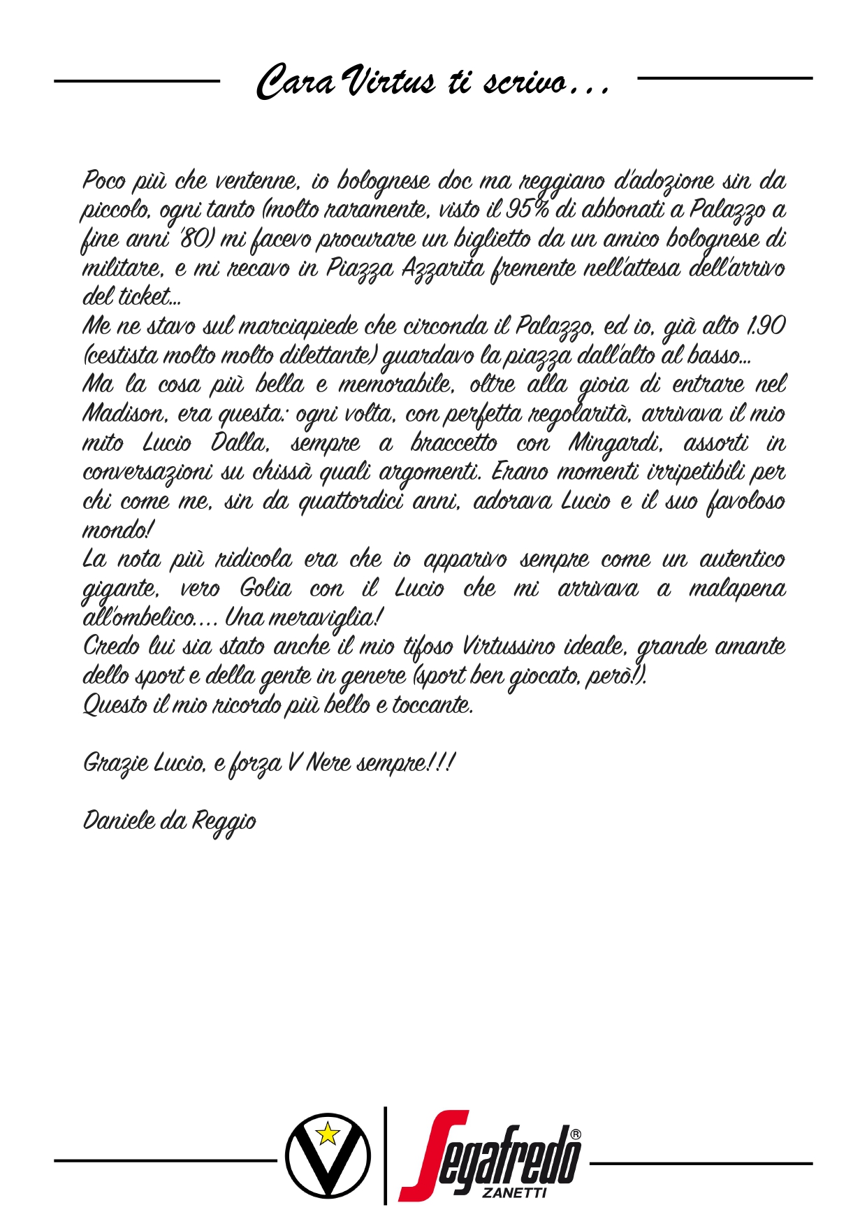 Cara Virtus ti scrivo