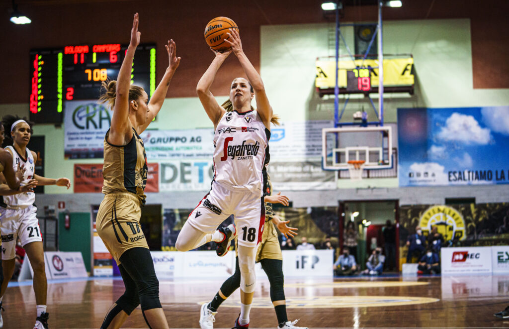 Inizia la Coppa Italia della Virtus Segafredo Bologna Femminile, a San Martino di Lupari la squadra di Coach Lardo affronta le molisane della Magnolia Campobasso nell’ultimo quarto di finale, chi vince affronterà le Campionesse d’Italia in carica della Umana Reyer Venezia. Partenza aggressiva delle V Nere che trovano subito in avvio giocate e punti grazie a Dojkic e Zandalasini, dall’arco e nel pitturato la Segafredo punisce le sue avversarie portandosi sul +6 dopo 3′ dalla palla a due (12-6), Campobasso prova a reagire portandosi sul -3 ma dalla lunetta e poi in contropiede la Virtus allunga fino al +8 (19-11) complice anche una mira piuttosto imprecisa della Magnolia che litiga non poco con il canestro. Gli ultimi 2′ di gioco vedono l’ingresso in campo della neo arrivata Sagerer, Tassinari e compagne difendono il vantaggio ma la squadra di Coach Sabelli si riporta a contatto prima che la play croata virtussina trovi la soluzione dall’arco che permette alle sue compagne di chiudere i pimi 10′ di gioco sul punteggio di 26 a 20. La reazione avversaria non si fa attendere ma la Virtus risponde a tono con Zandalasini e con i primi punti di Sagerer, Pasa penetra in maniera vincente e la Segafredo tocca nuovamente il +9 costringendo la panchina di Campobasso a chiamare il time out, 39 a 30 a 5′ abbondanti dall’intervallo lungo; capitan Tassinari chiude il gioco da tre punti ma Togliani e compagne non ci stanno, muovono bene la palla, conquistano i rimbalzi e si riportano a -3 dalle V Nere (44-41). Turner e Zandalasini non sbagliano dalla lunetta e la Segafredo chiude il primo tempo sul punteggio di 48 a 43. Terzo quarto che vede la Magnolia partire forte per provare a cucire lo svantaggio, Pasa in difesa stoppa ed intercetta tutto ciò che passa, Turner è quasi sempre una sentenza sotto i tabelloni e sempre la ex di giornata si lancia in contropiede portando la Segafredo sul +10 (57-47) a metà quarto, Cinili segna da tre con continuità, Gray e compagne faticano a vedere la via del canestro, quando suona la terza sirena la Segafredo conduce la gara di 13 lunghezze, 63-51. Il parziale di 6 a 0 targato Campobasso rimette in discussione punteggio e gara, Zandalasini e Tassinari (3/3) rimettono in carreggiata la Virtus che torna sul +10 (69-59) a 5′ dal termine, la sfida non è ancora finita perchè le ragazze di Coach Sabelli attaccano e chiudono bene i loro giochi nel pitturato bianconero portandosi a soli due possessi da Cinili e compagne (69-63). Tanti errori da entrambe le parti, partita tesa e spesso interrotta dai fischi arbitrali, Turner segna il canestro che però vale l’accesso alla semifinale. I tentativi di Campobasso nel finale sono vani, vince la Segafredo 73-67. In semifinale ci sarà Venezia.