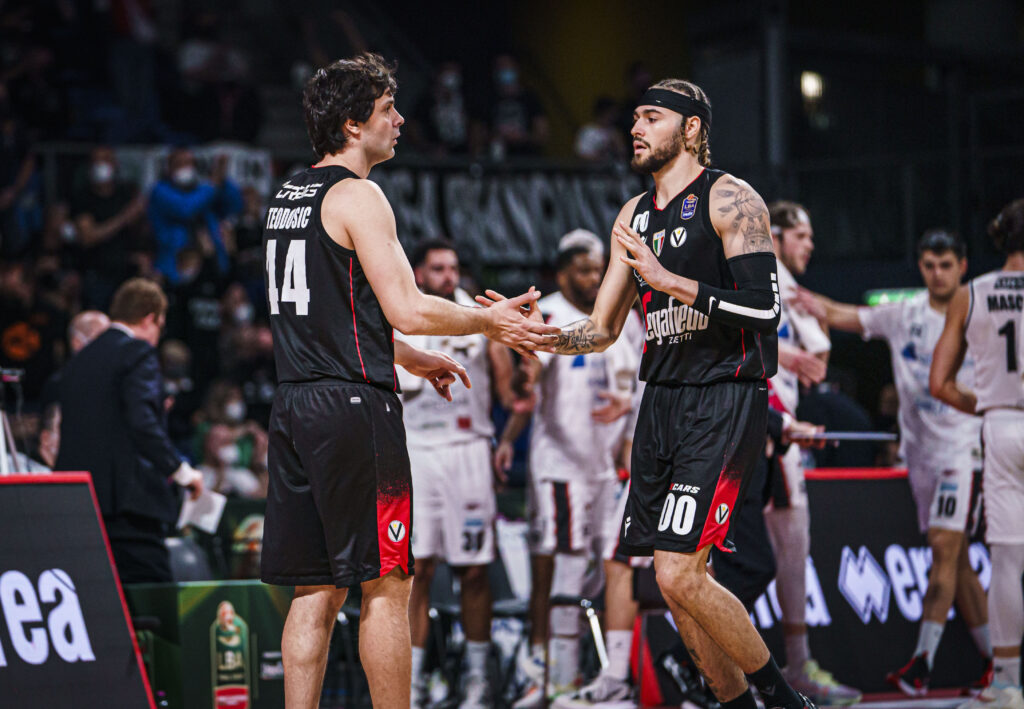 Virtus Segafredo Bologna: Cordinier 10, Tessitori, Mannion 2, Belinelli 18, Pajola 7, Alibegovic 2, Hervey 5, Ruzzier ne, Jaiteh 15, Sampson 2, Weems 17, Teodosic 4.