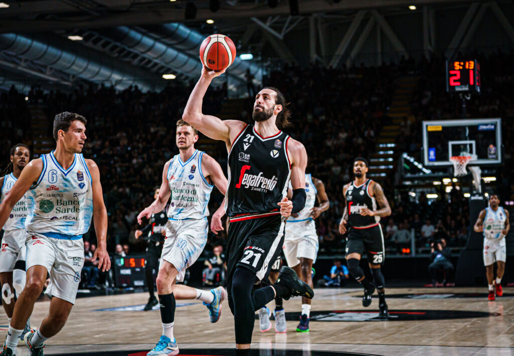 All’avvio del terzo parziale le due squadre continuano a mantenere uno stallo precario ma senza che nessuna riesca a prevalere nettamente: dopo 3′ minuti è la Virtus ad avere un piccolissimo margine di 2 punti sugli ospiti sul punteggio di 45-43. Alla tripla in transizione di Belinelli risponde Kruslin, poi la Segafredo è capace di costruirsi un parziale di 4-0, sul punteggio di 52-48, per provare a ricostruire il gap. Shengelia prova a farsi carico dei compagni in fase offensiva: il gap creato è utile ai bianconeri che riescono ad allungare sul 61-53 al tramonto del parziale chiudendo il parziale sul punteggio di 63-53. Continua anche nell’ultimo parziale il momento topico della Segafredo che stringe la difesa e si aggrappa ai rimbalzi catturati, sia offensivi che difensivi, e ad un Jaiteh che su entrambe le metà campo sta facendo sentire il suo peso specifico. Anche Sassari riesce ad uscire alla distanza, provando anche ad innervosire il gioco ma è costretta a fare i conti con la fisicità della Virtus che concede poco in fase offensiva con appena 6 punti in oltre 6′ minuti di gioco. La Segafredo invece continua a produrre gioco e dilata il gap portandosi sul+15 quando sul cronometro mancano poco più di 3′ minuti di gioco. Nel finale il divario si amplia ancora di più e la Segafredo vince con autorevolezza il match con il punteggio di 86-69.