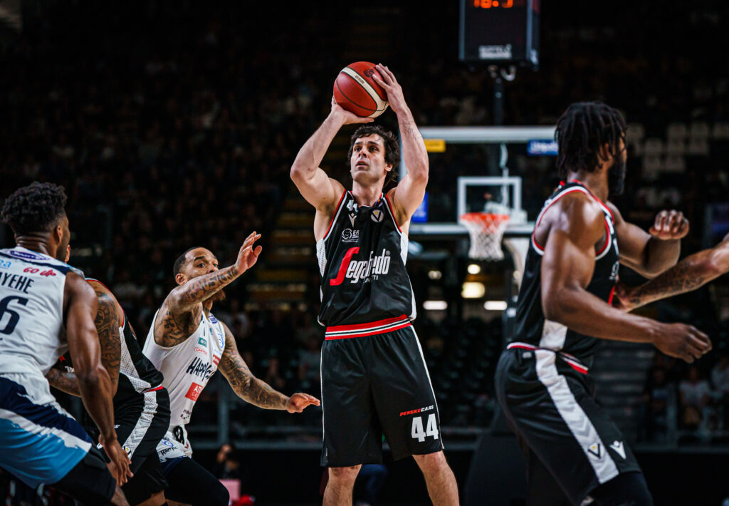 Match aperto da Hackett che trova il fondo della retina da oltre l’arco seguito da Jaiteh in penetrazione per un rapido 5-0 di parziale nel primo minuto. Ancora Hackett a colpire dalla distanza costringe Brindisi a rincorre sin dai primi minuti di gioco: il canestro con fallo di Shengelia, che dalla lunetta non trema, permette al georgiano di realizzare un gioco da tre punti che vale l’11-2 dopo 3′ minuti di gioco. Brindisi trova un po’ di ossigeno con la tripla di Reed ma i Burnell mette in forte salita la propria gara, accumulando due falli pesanti nell’economia del match: nonostante ciò i pugliesi tentano un timido parziale che consente loro di riportarsi sul punteggio d i11-8 a metà quarto. Match ritorno in equilibrio con un duello piuttosto acceso tra Jaiteh e Perkins sotto canestro, a darsi battaglia a suon di canestri. Anche la tensione cresce con Hackett e Reed che ricevono un tecnico a testa, con cui Brindisi si riporta a -4. Il primo parziale termina con il punteggio di 28-21. Nel secondo parziale la partita rimane su una sostanziale parità ma con la Segafredo sempre nelle condizioni di mantenere il vantaggio che è riuscita a crearsi, con un bottino di 6 punti dopo 3′ minuiti di gioco. I bianconeri trovano anche dai cambi dalla panchina delle ottime prestazioni come quella di Mannion che in attacco fa spesso andare fuori giri la difesa ospite: la Segafredo continua a restare in vantaggio ma Brindisi è sempre a contatto con tanta energia. La schiacciata nel traffico di Cordinier, con fallo aggiuntivo realizzato, consente alla Segafredo di prendere un nuovo vantaggio dopo il sorpasso ospite ad opera di Perkins: 50-48 il nuovo vantaggio bianconero a meno di 1′ minuto dal termine. Il primo tempo termina con la Virtus in vantaggio sul punteggio di 53-48.