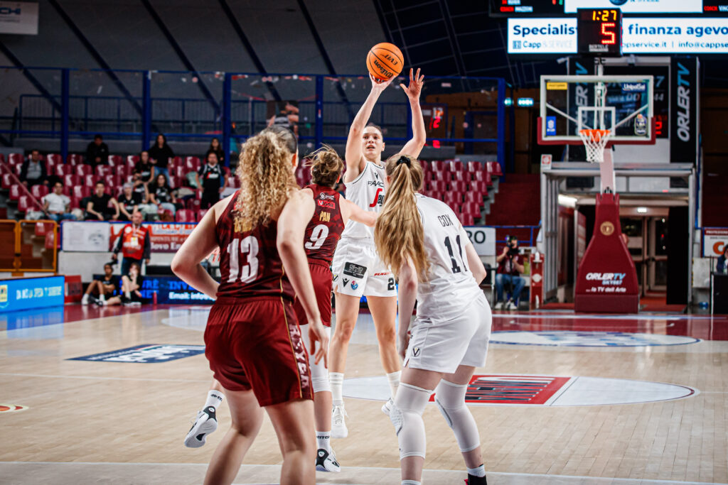 Anche la capitana Cecilia Zandalasini si è fermata in zona mista: “E’ stata una partita veramente tosta, Venezia è la testa di serie del nostro campionato e giocare qui è veramente difficile. Abbiamo vinto la partita grazie alla difesa, perchè concedere a una squadra talentuosa come la loro solo 51 punti è stato veramente un grande sforzo collettivo e sono molto contenta per la nostra vittoria.”