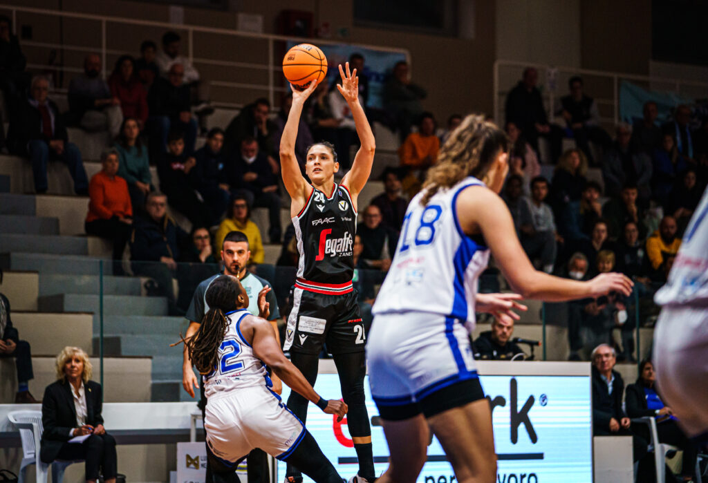 Piglio migliore è quello con il quale la Segafredo inizia il terzo parziale che con un break di 0-7 costringe Faenza a chiamare un time out per riordinare una difesa a zona che fatica sui rapidi ribaltamenti di fronte. Il time-out funziona perchè la Faenza che rientra in campo è capace di fare male alle V nere tanto da assorbire il distacco con un parziale di 8-0 per tornare a -9. La Virtus decide quindi di affidarsi ad un Parker formato MVP che trascina le compagne con 7 punti consecutivi mettendo in mostra tutte le sue qualità. Faenza resta quanto più possibile a contatto, ma le due triple consecutive di Zandalasini chiudono il terzo parziale sul 52-65. Si apre cosi l’ultima frazione con la Virtus chiamata ad ampliare il risultato per chiudere definitivamente la gara e mettere in ghiaccio il risultato. Con un buon break di 0-9, la Virtus si porta velocemente sul 52-73 grazie ad una difesa che interrompe tante linee di passaggio di Faenza in fase d’attacco, con la E-Work carente dal punto di vista realizzativo. Nella seconda metà del quarto, le percentuali realizzative di Faenza crescono e le romagnole hanno il merito di recuperare qualche punto tornando a -14 , riducendo ulteriormente nel finale per il definitivo 69-79