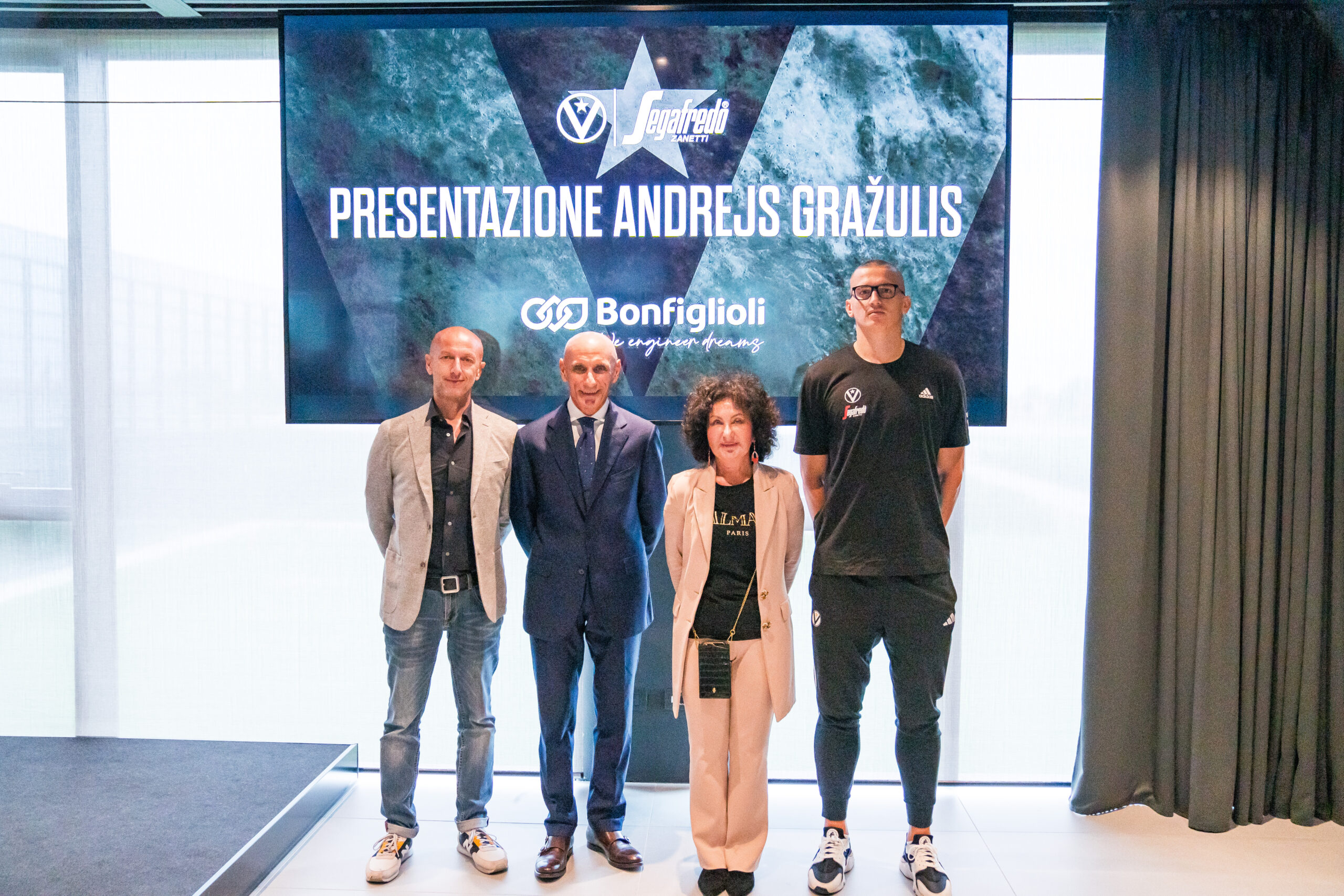 È stato presentato oggi nella sede di Bonfiglioli SPA, partner di Virtus Segafredo Bologna, il nuovo acquisto bianconero Andrejs Grazulis.