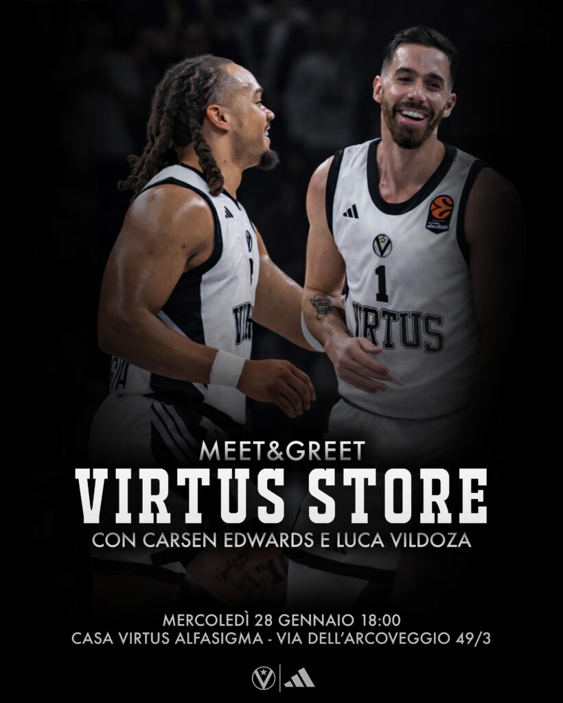 Mercoledì 28 gennaio alle ore 18.00 Carsen Edwards e Luca Vildoza saranno i protagonisti del Meet & Greet al Virtus Shop di Casa Virtus (Via dell’Arcoveggio 49/3).