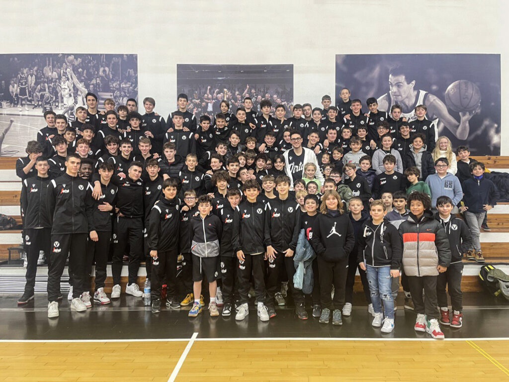 Il Settore Giovanile Virtus Emil Banca si è riunito nella sua totalità di atleti e staff per un incontro dalla doppia finalità: da un lato l’occasione per scambiarsi gli auguri di Buone Feste, dall’altro quella di assistere a una lezione speciale, tenuta da un professore inedito come Alessandro Pajola, playmaker della Virtus Segafredo.