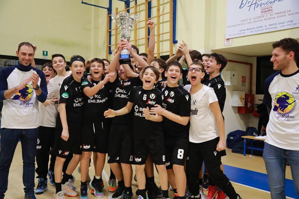 Ha iniziato l’anno col sorriso la formazione U13 guidata da Riccardo Pezzoli, che si è aggiudicata la 26° edizione del prestigioso torneo di Nole-Ciriè, al termine di una entusiasmante finale contro l’Olimpia Milano, dove i bianconeri recuperano uno svantaggio in doppia cifra nel terzo quarto, mettendo la testa avanti e senza guardarsi più indietro. L’atleta virtussino Ettore Piras è stato inserito nel Miglior Quintetto della manifestazione, mentre il bianconero Pietro Castagnetti ha ricevuto il premio di MVP.