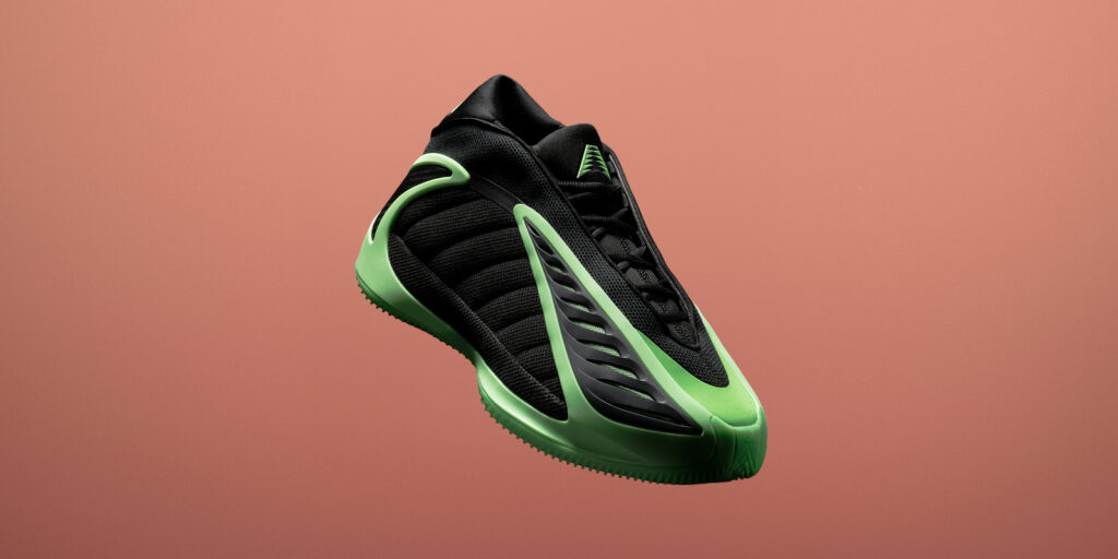 Successivamente, adidas ed Edwards presentano il lancio globale della colorazione “Glow”, in arrivo il 12 aprile. Caratterizzata da una tomaia nera elegante con vividi accenti verde neon che percorrono le linee distintive della scarpa, questa versione cattura l’attenzione sia in movimento che in condizioni di scarsa luminosità. La sua caratteristica principale: dettagli fosforescenti che brillano al buio, garantendo un impatto visivo in ogni momento della giornata.